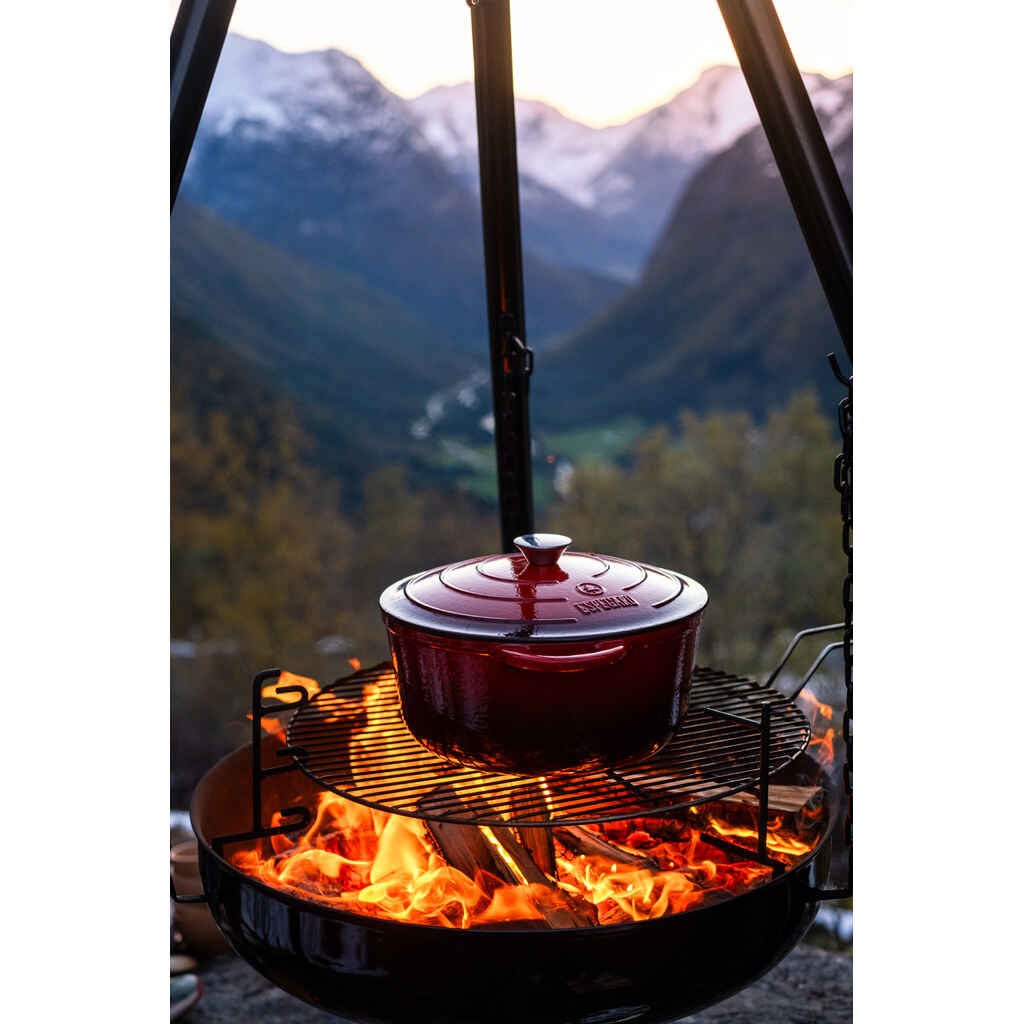 Bålpanne Glo on Espegardin 20 vuotta vanha alkuperäinen tuote uudessa, parannetussa versiossa. Meillä on vankat juuret vanhaan menestyksekkääseen muotoiluumme, mutta olemme tehneet teknisiä muutoksia, jotka tekevät Bålpanne Glo:sta parhaan koskaan valmistamamme tulipesäpannun. Äskettäin kehitetty palonvahvistin takaa tulipannun, jossa on täydelliset olosuhteet ruoanlaittoon ja paljon nuotiotunnelmaa perheen kanssa.