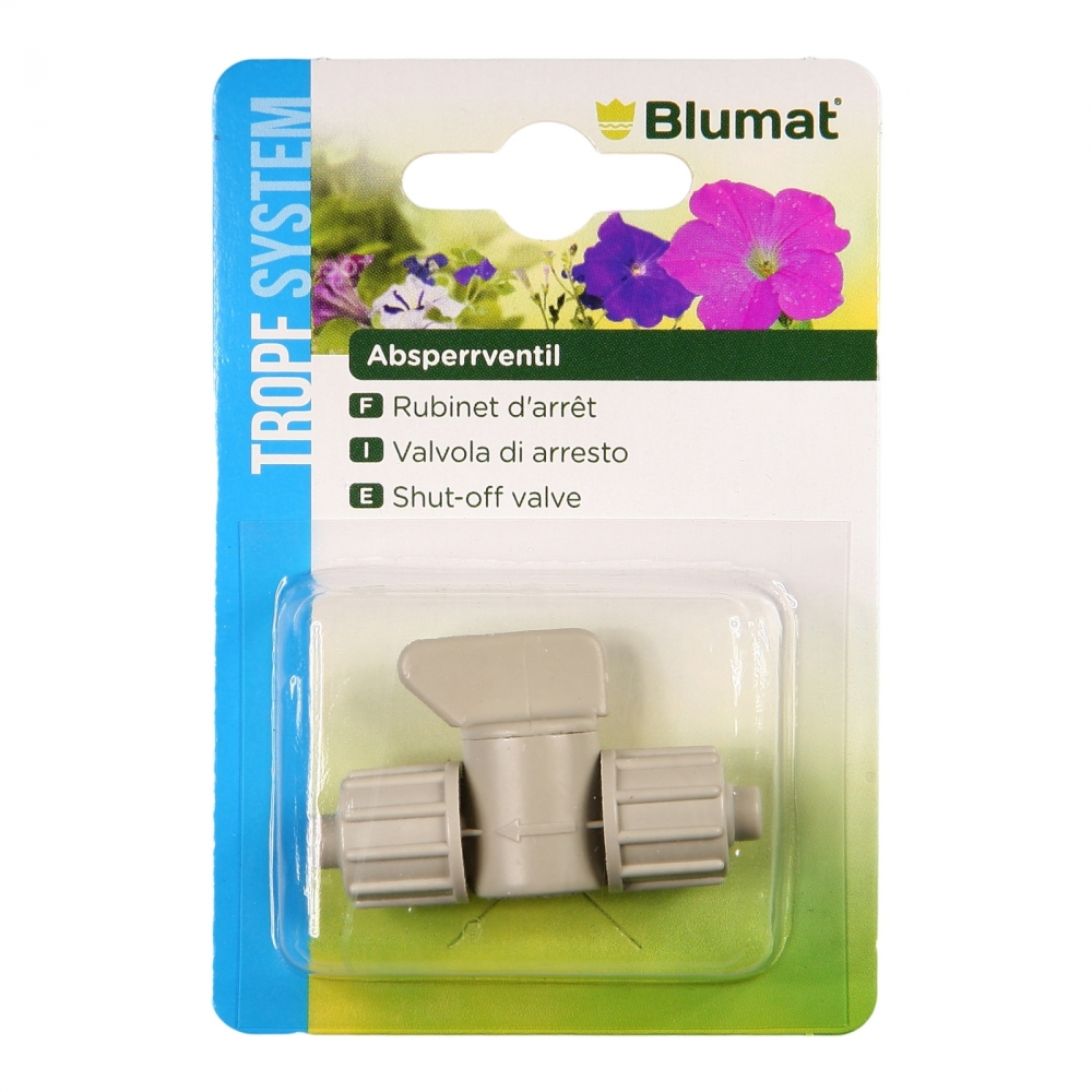 Hana kiinnitetään 8 mm letkuun, jolloin voidaan sulkea veden kulku Blumat-kastelujärjestelmässä.