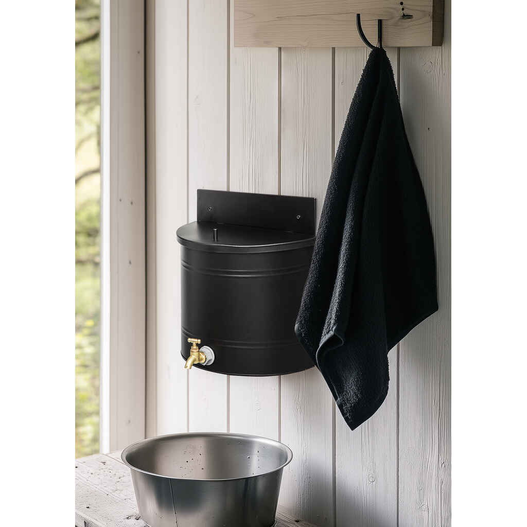 Puutarhan ja kesämökin klassikko. Ulkoseinään kiinnitettävä metallinen vesisäiliö helpottaa esimerkiksi käsienpesua. Tilavuus 10 l.