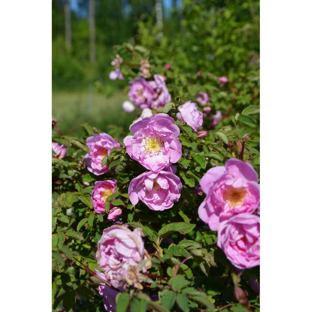 Pensas on tiheäversoinen ja kaartuvaoksainen. Lehdet ovat vaaleanvihreät ja suuremmat kuin juhannusruusulla. Juurivesoja syntyy runsaasti.