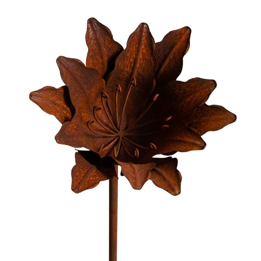 Ruosteen värinen koristekukka pihaan ja puutarhaan. Korkeus 90 cm.