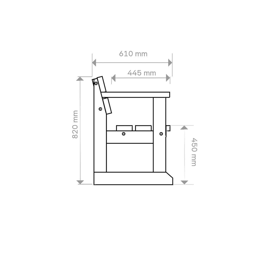 Istuinkorkeus 44cm, Istuinsyvyys 46cm, painoraja 350kg, Hoito-ohje:Huolehdi tuotteen puhtaudesta puhdistamalla puupinnat irtonaisesta liasta ja pölystä säännöllisesti, vähintään kerran vuodessa. Puhdistukseen voi käyttää mietoa saippuavettä. Mikäli puussa on kuullote eikä maali, suosittelemme puun öljyämistä pesun jälkeen. Puun puhtaanapito takaa keston ja säilymisen hyvännäköisenä useampia vuosia. Suosittelemme talvisäilystystä viileähkössä, kuivassa ja ilmavassa varastotilassa.