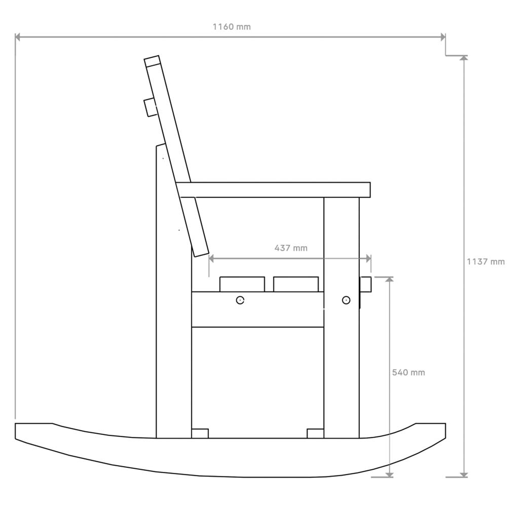 Selkänojallinen puinen seniorikeinutuoli ulkokäyttöön. Jämäkkää 40 mm havupuulankkua. Sävytetty vesiohenteisella kuullotteella. Maatavasten tulevat osat kestopuuta. Erittäin kestävä.