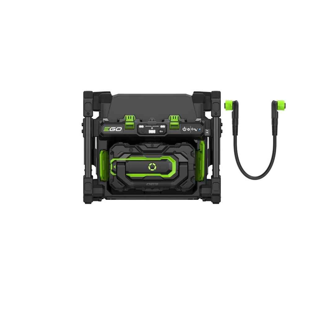Power Bank DC latausasema + suurtehoakku. Power Bank käyttää energiaa EGO Professional 40Ah High Capacity Battery -akusta ladatakseen minkä tahansa EGO:n kannettavan ARC Lithium -akun. Tämä tarjoaa ammattikäyttäjille erittäin nopean ja tehokkaan latauksen koko päivän työskentelyyn ja vähentää tarvetta kantaa mukana useita akkuja.