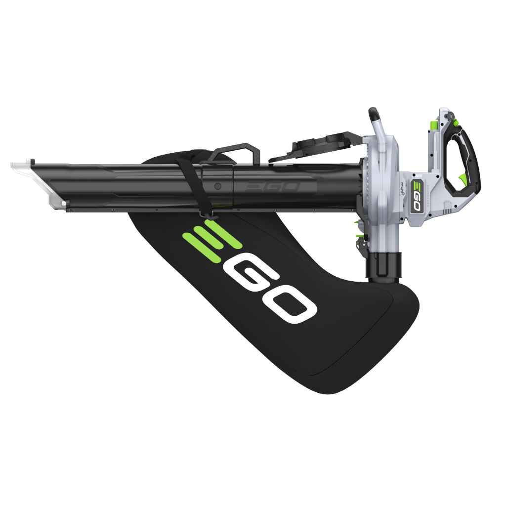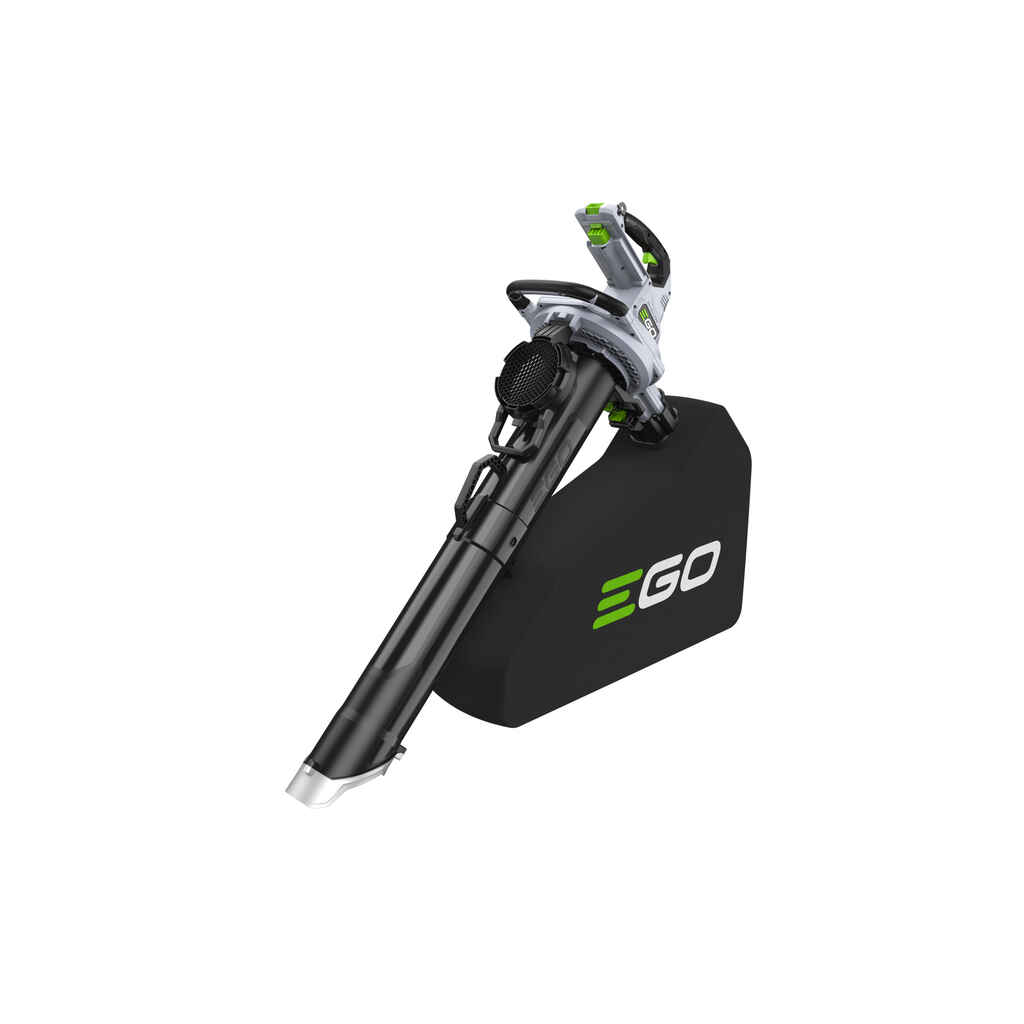 Uusi EGO Power+ LV5000E 3 in 1 -lehtipuhallin-imuri ei pelkästään puhalla pudonneita lehtiä kasaan, vaan ne voidaan myös nopeasti siivota pois imutoiminnon ja keräyspussin avulla.