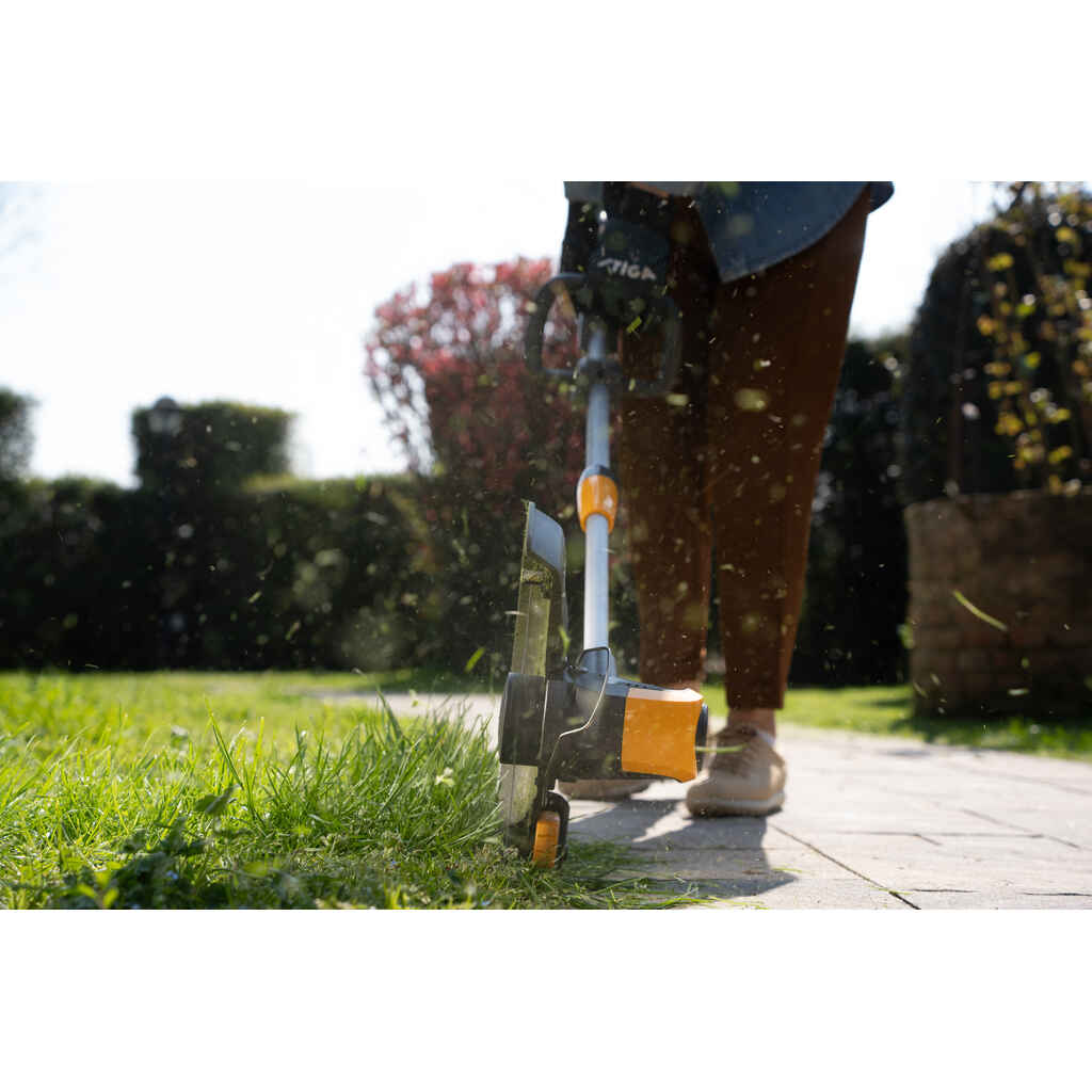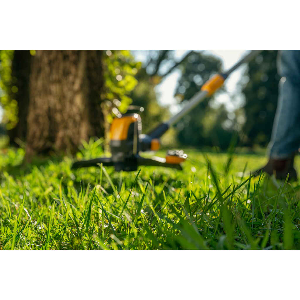 Johdoton GT 500e Kit -ruohotrimmeri on riittävän tehokas suoriutumaan kaikista viimeistelyistäsi - sekä riittävän monipuolinen leikkaamaan nurmikkosi reuna-alueet tarkasti. 48V, 2 Ah akun ansiosta GT 500e Kit -trimmerillä voi työskennellä jopa 20 minuuttia yhdellä latauksella. Yhdellä nopealla leikkuupään käännöllä voit helposti vaihdella trimmauksen ja reunaleikkuu toimintojen välillä. Täydellistä reunojen leikkuuta varten käännä vain leikkuupäätä 90° ja nauti lopputuloksesta. Erittäin suorituskykyinen automaattisyöttöinen kaksoissiimapää varmistaa keskeytyksettömän ja vaivattoman trimmauksen. Etukahvaa ja teleskooppista runkoputkea voidaan säätää sopivaksi kaikkein mukavimpaan työskentelyasentoon. Käynnistäminen on helppoa - paina vain on/off-nappia aisassa sijaitsevassa hallintapaneelissa ja anna mennä. Ja kun kaikki on siistiä, voit erottaa runkoputken helposti kahteen osaan säästämään varastointitilaa. Akku ja laturi sisältyvät hintaan.