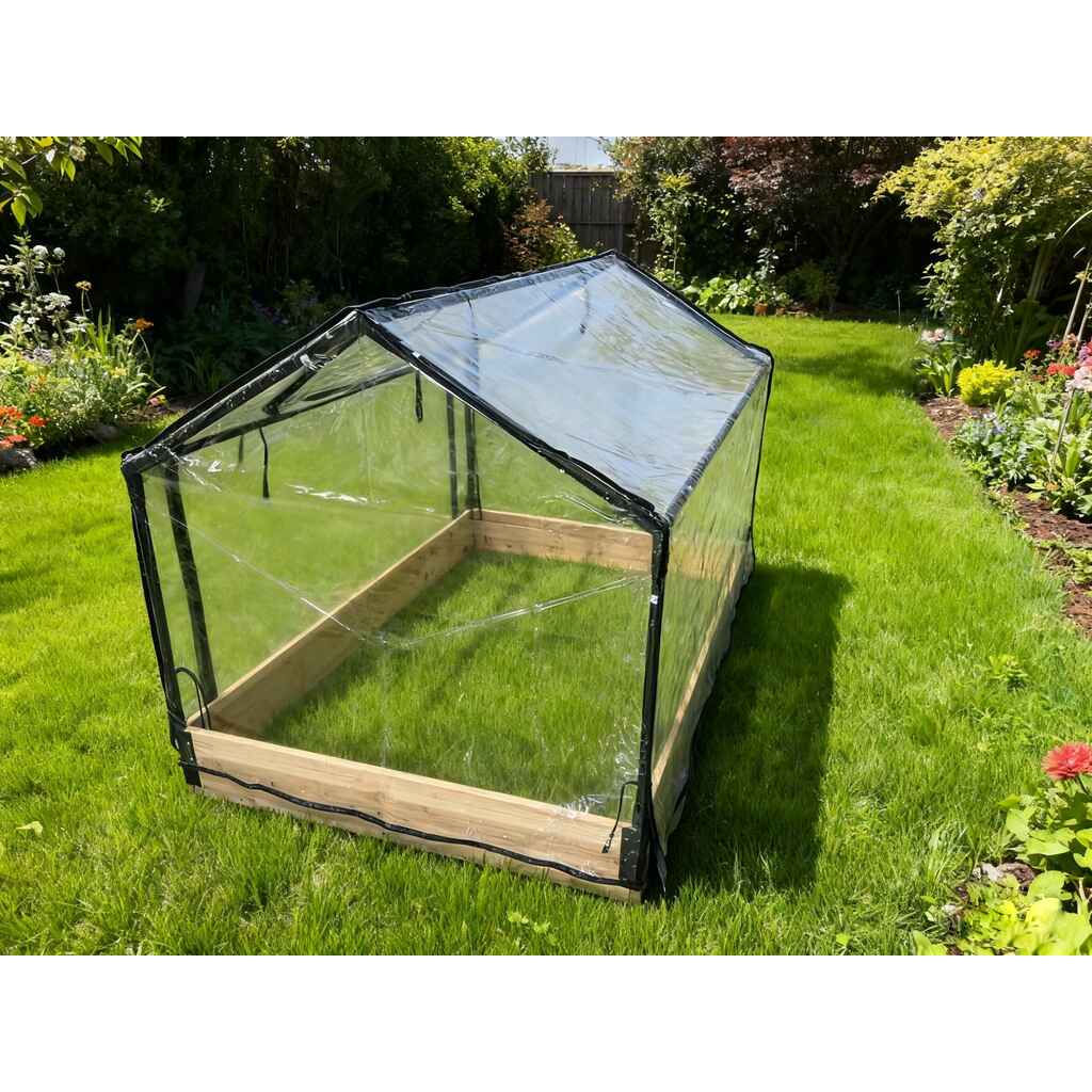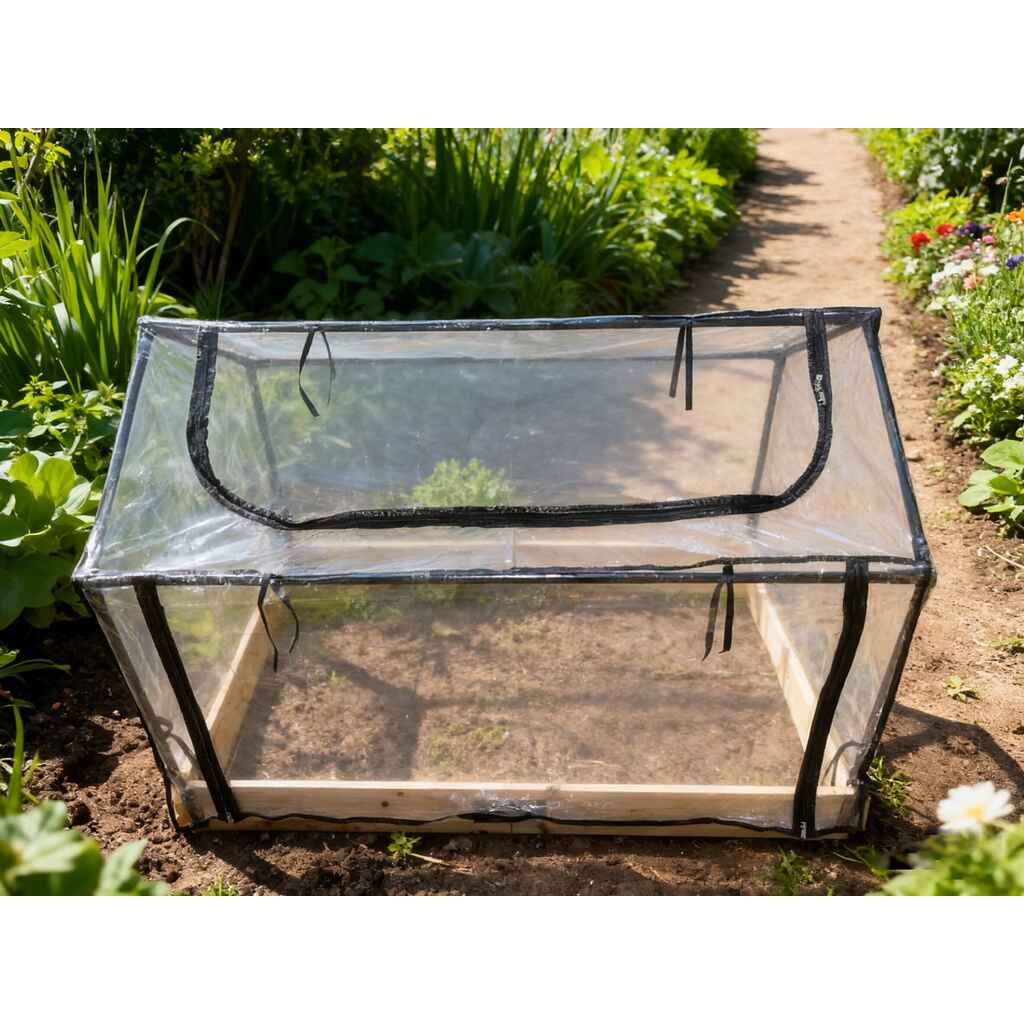 Kasvihuone on suunniteltu 120x80 cm kuormalavakauluksen päälle. Valmistettu läpinäkyvästä PVC-muovista ja runko metallista. Katossa on aukeava luukku, joka helpottaa kastelua ja hoitoa. Korkeus 60 cm.