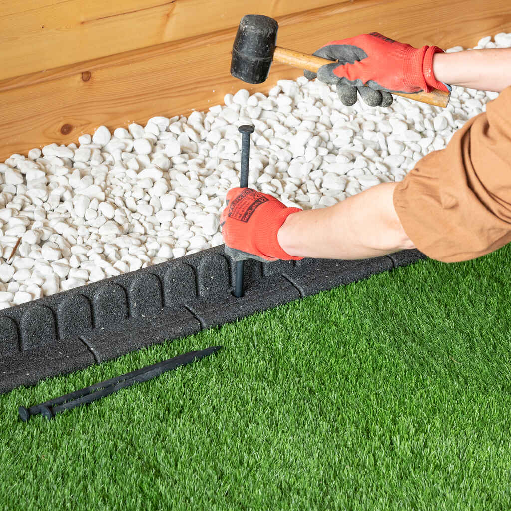 - Koristeellinen rajausreunus joka helpottaa nurmikon rajausta ja leikkausta ruhonleikkurilla. Reunanauha on helppo taivuttaa tarvittaviin muotoihin ja leikata oikeaan pituuteen.