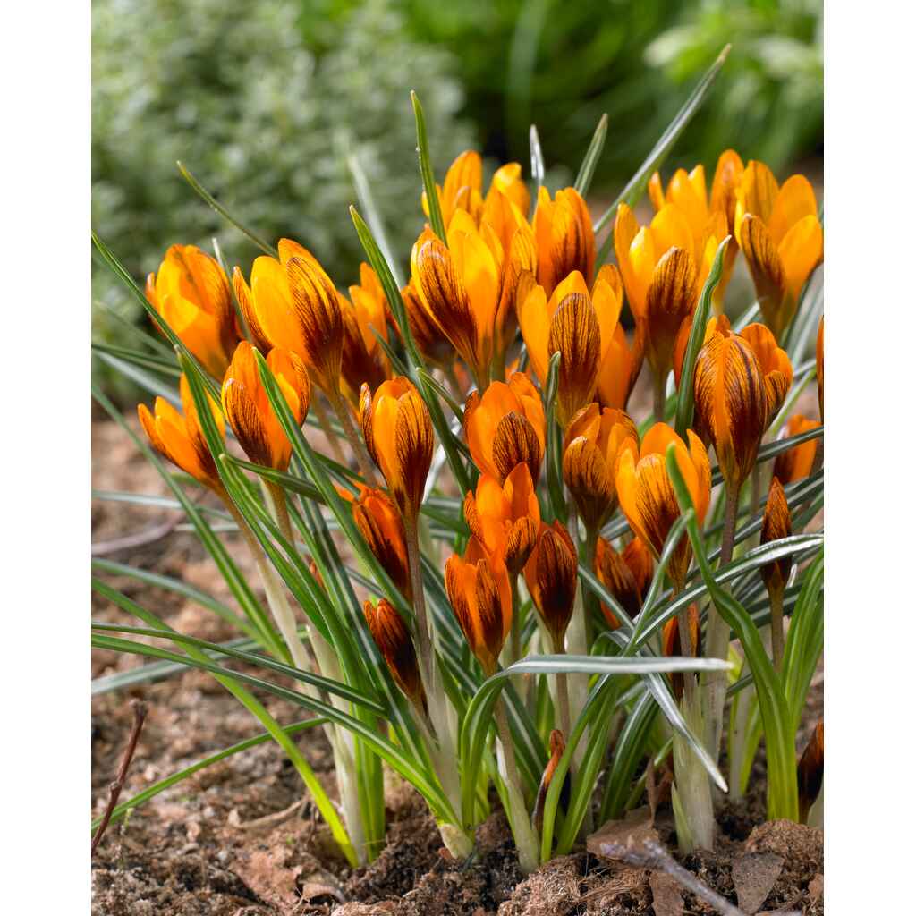 Krookus 'Orange Monarch', pussissa 15 sipulia. Sipulin koko 5/7.