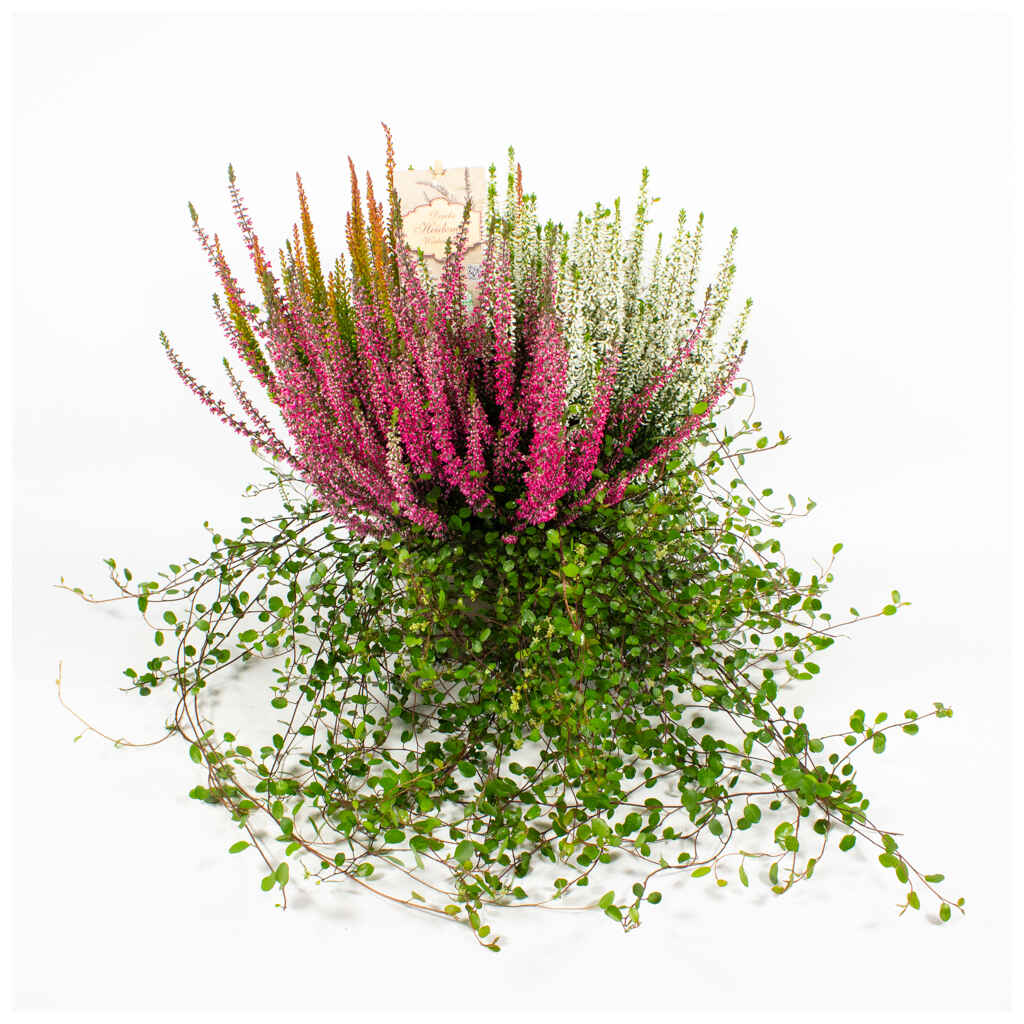 Calluna Heide mix sisältää aitokanervaa ja lankaköynnöstä 15 cm ruukkuun istutettuna. Säännöllinen kastelu pakkasten tuloon saakka. Ei kaipaa lannoitusta.