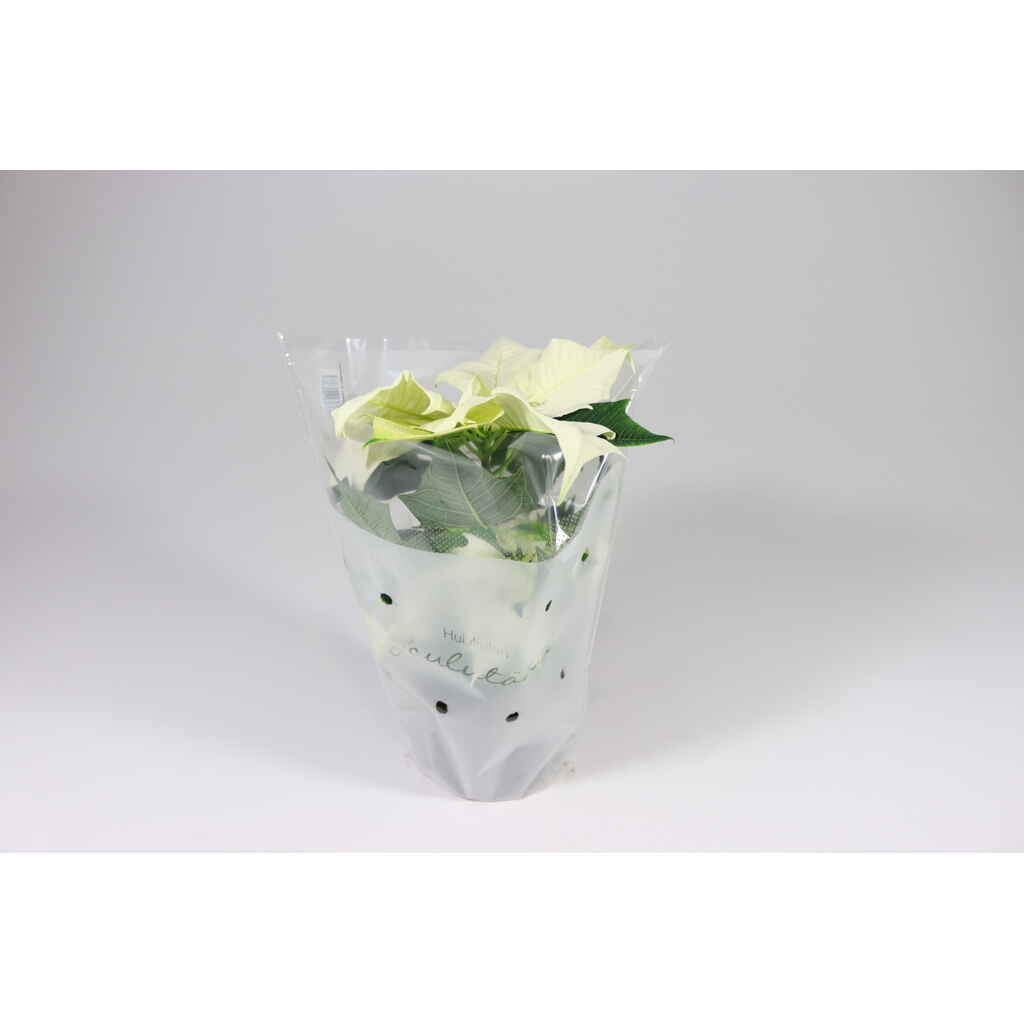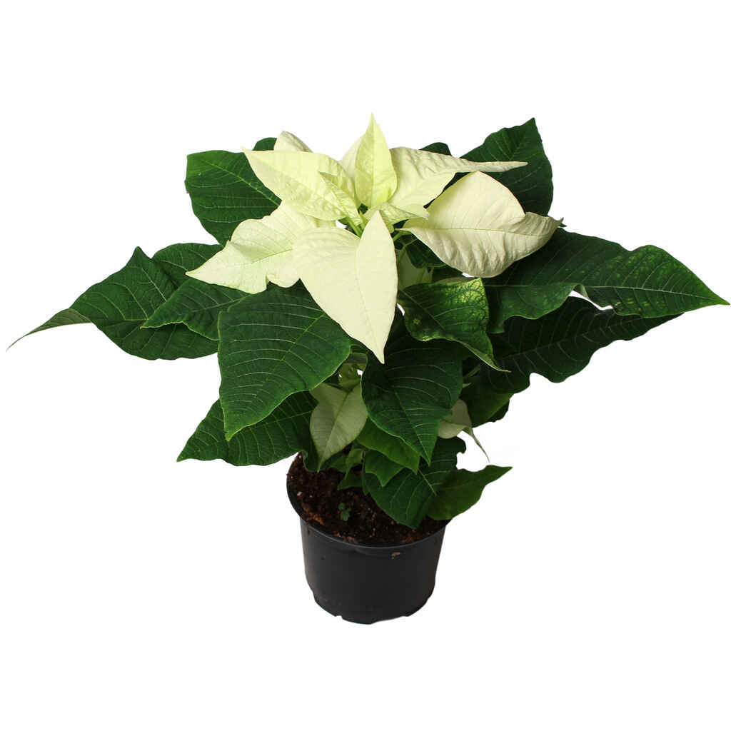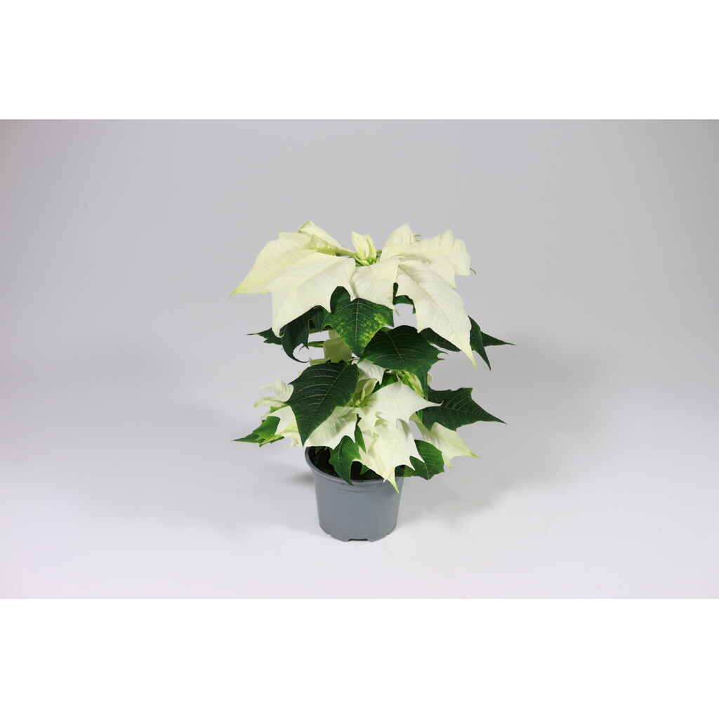 Yksilatvainen, valkoinen L-kokoinen joulutähti poikasilla. Ruukun koko: 11 cm.
