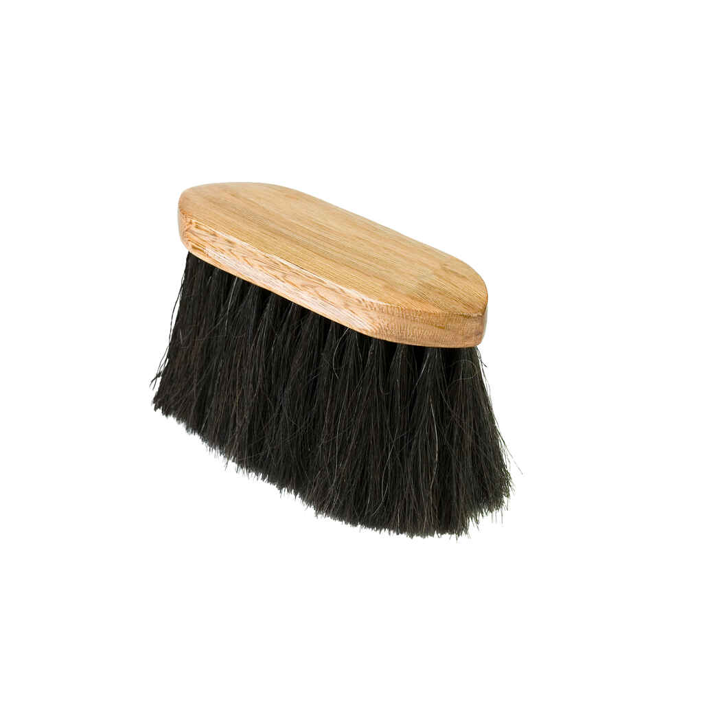 Klassinen pölyharja, jonka pehmeät ja pitkät harjakset on valmistettu aidosta hevosenharjasta. Puukansi.