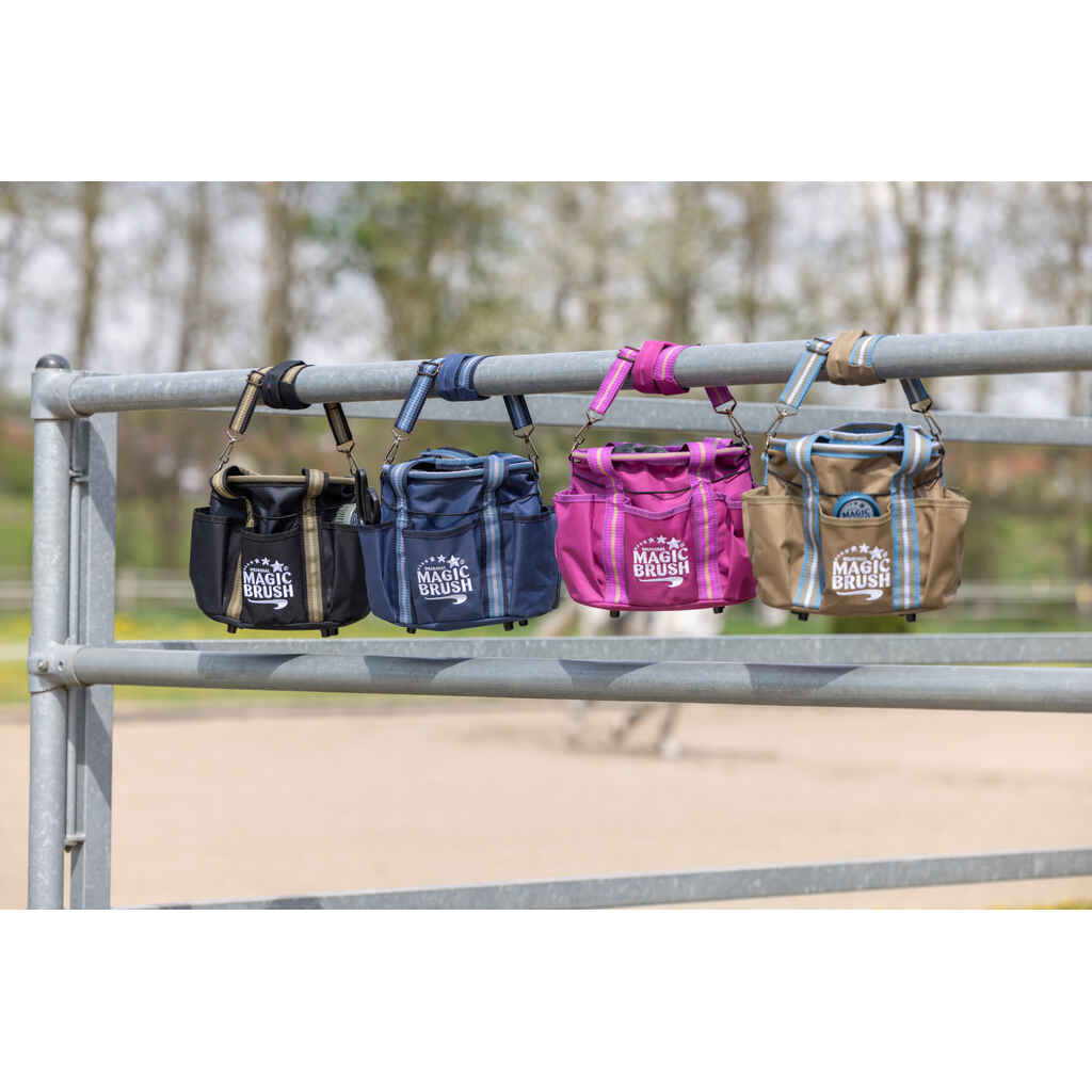 Helpotusta talliarkeen tuo näppärä MagicBrush harjakassi. Harjakassissa säilytät kaikki päivittäin tarvitsemasi hoitotarvikkeet ja tarvittaessa ne kulkeutuvat helposti myös kisoihin ja muihin seikkailuihin. Harjakassissa on useita erilaisia lokeroita ja taskuja kaikelle tarpeelliselle.