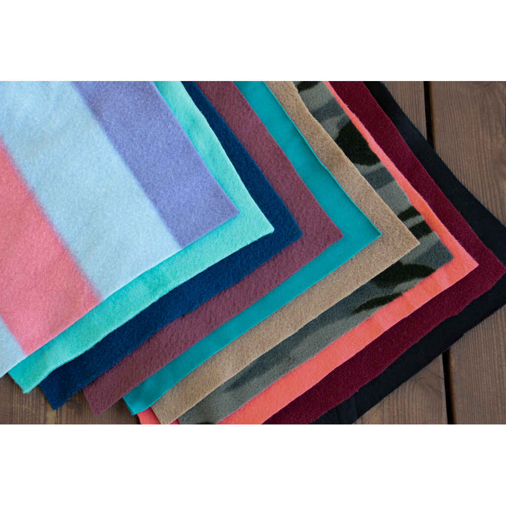 Värikäs lajitelma fleeceloimia kiinteällä kaulakappaleella. Värivalikoima vaihtelee myymälöittäin. Koot: 125 - 165 cm.