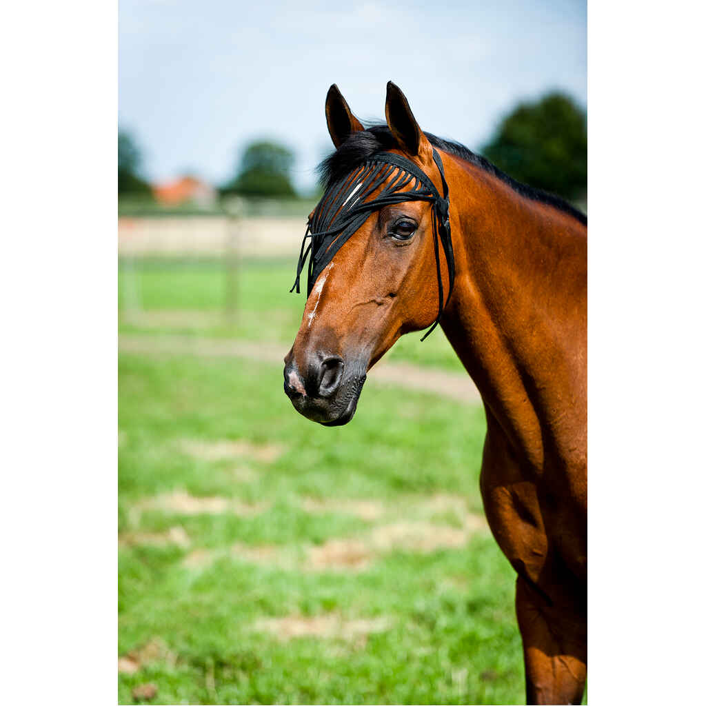 Hapsupanta tarjoaa yksinkertaisen ratkaisun hevosen ympärillä pörrääviä ötököitä vastaan. Tämä hapsupanta ei tarvitse riimua kaveriksi, vaan se voidaan kiinnittää hevosen päähän sellaisenaan. Kiinnitä hapsupanta hevosen kaulan ympärille korvien takaa. Poskien kohdalla säätömahdollisuus.