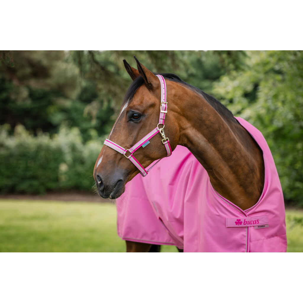 Kevyt ja huolellisesti suunniteltu Bucas Dublin riimu on erinomainen valinta jokapäiväiseen käyttöön. Kestävässä nailonriimussa on vuoraus turvan päällä sekä niskahihnassa. Reilu säätövara niskahihnassa mahdollistaa yksilöllisen istuvuuden. Poskella oleva pikalukkokiinnitys on muotoiltu niin, että se ei paina poskea. Lukko on tukeva ja helppokäyttöinen.