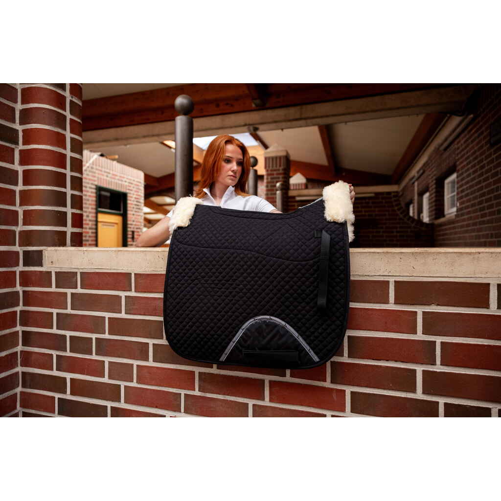 Horze Harleigh satulahuopa suojaa hevosen selkärankaa tarjoten täydellistä liikkumisvapautta. Satulahuopa on pehmustettu miellyttävän tuntuisella, aidolla lampaankarvalta koko satulan istuimen alueelta, joten se sopii myös herkemmille hevosille. Valmistettu laadukkaasta ja hyvin hengittävästä materiaalista. Selkärangan kohdalla oleva mesh-paneeli lisää huovan hengittävyyttä.