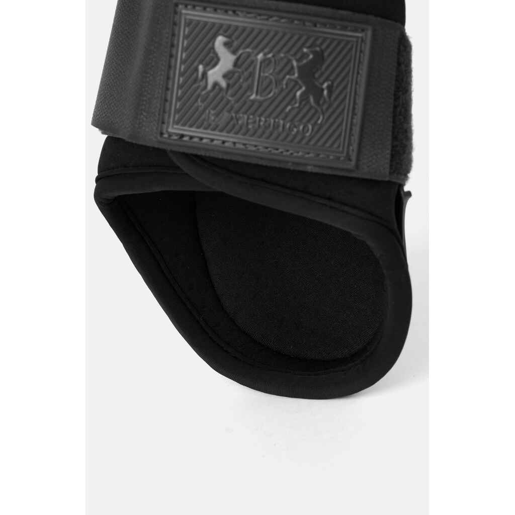 B Vertigo Ocala hivutussuojissa on tukeva ja hyvin iskuilta suojaava ulkopinta sekä miellyttävän pehmeä sekä hyvin hegittävä, perforoitu neopreenivuori. Joustavat tarranauhakiinnitykset varmistavat suojien optimaalisen istuvuuden. Logoyksityiskohdat viimeistelevät kokonaisuuden.