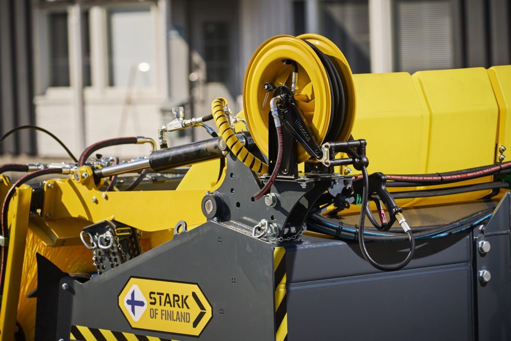Hydrauliikkamoottori sijaitsee harjatelan sisällä, joten se on suojassa iskuilta.