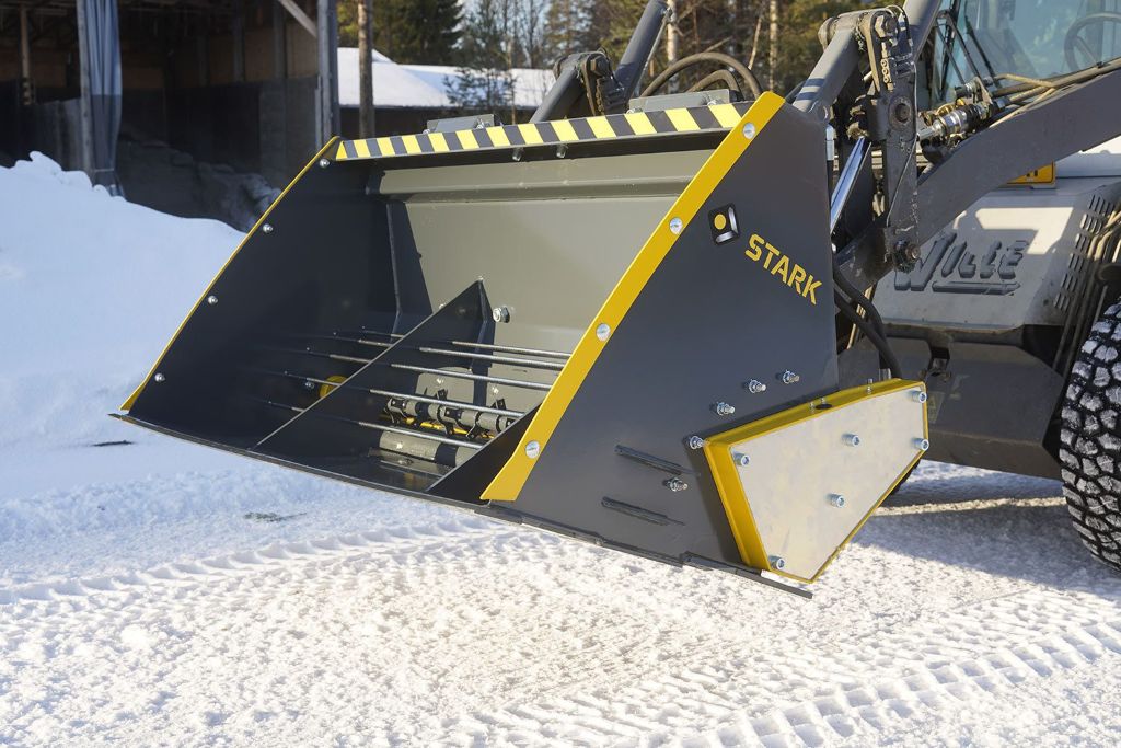Stark SSB hiekoituskauha on tehokas ja tarkka työlaite hiekan, sepelin ja suolan levitykseen. Kauhan suuri tilavuus, markkinoiden paras hyötyleveys ja helppo huollettavuus tekevät kauhasta kustannustehokkaan ja luotettavan ratkaisun liukkauden torjuntaan.