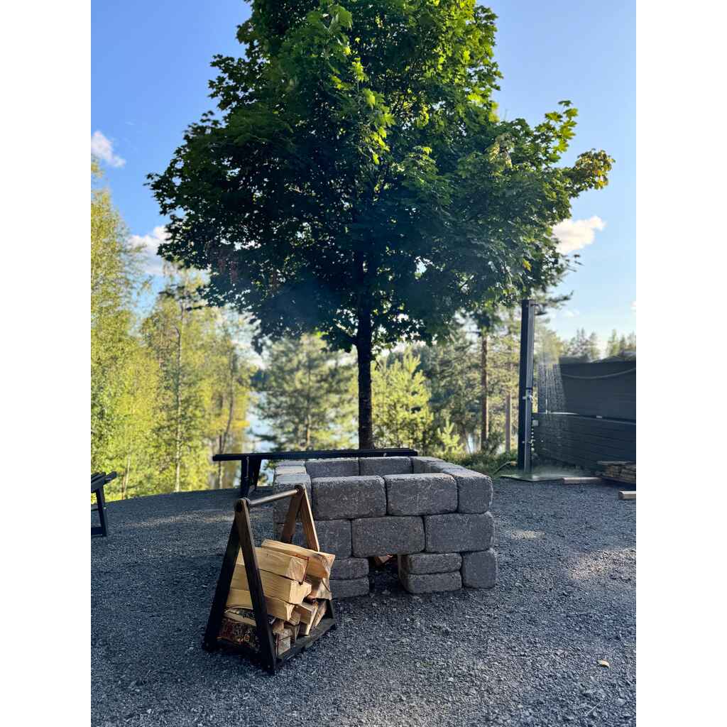 HB-Firepit on moni-ilmeinen ja näyttävä tulisija useaan käyttötarkoitukseen. Firepit on helposti muokattavissa omien toiveiden ja mittojen mukaan. Kokonaisuus sisältää 28 isoa patinoitua muurikiveä ja 4 matalaa patinoitua muurikiveä.