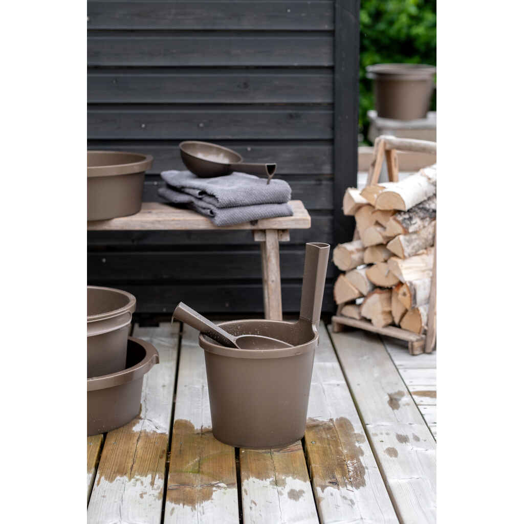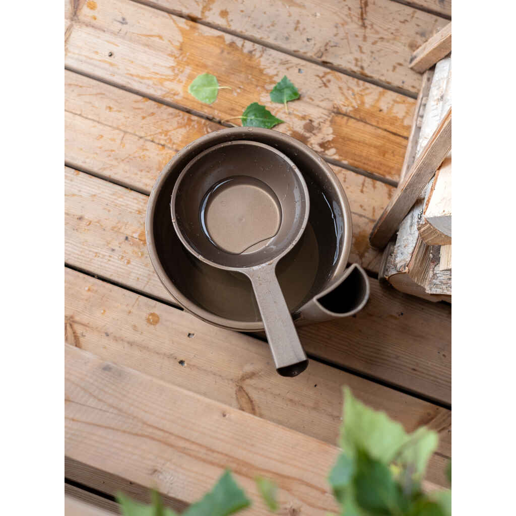 Luo saunaan harmoninen tunnelma Orthex-saunatuotteilla. Tyylikäs muotoilu ja tarkkaan mietityt käytännölliset ominaisuudet tekevät saunahetkistä entistäkin rentouttavampia. Tämä pienikokoinen vesikauha sopii erityisesti pieneen saunatilaan ja löylynheittoon. Kauhassa on ergonominen kahva, josta se voidaan kätevästi ripustaa roikkumaan säilytystä varten. Design by Pentagon Design. Valmistettu Suomessa kestävästä muovista. Kestää jopa 65 °C lämpöä.