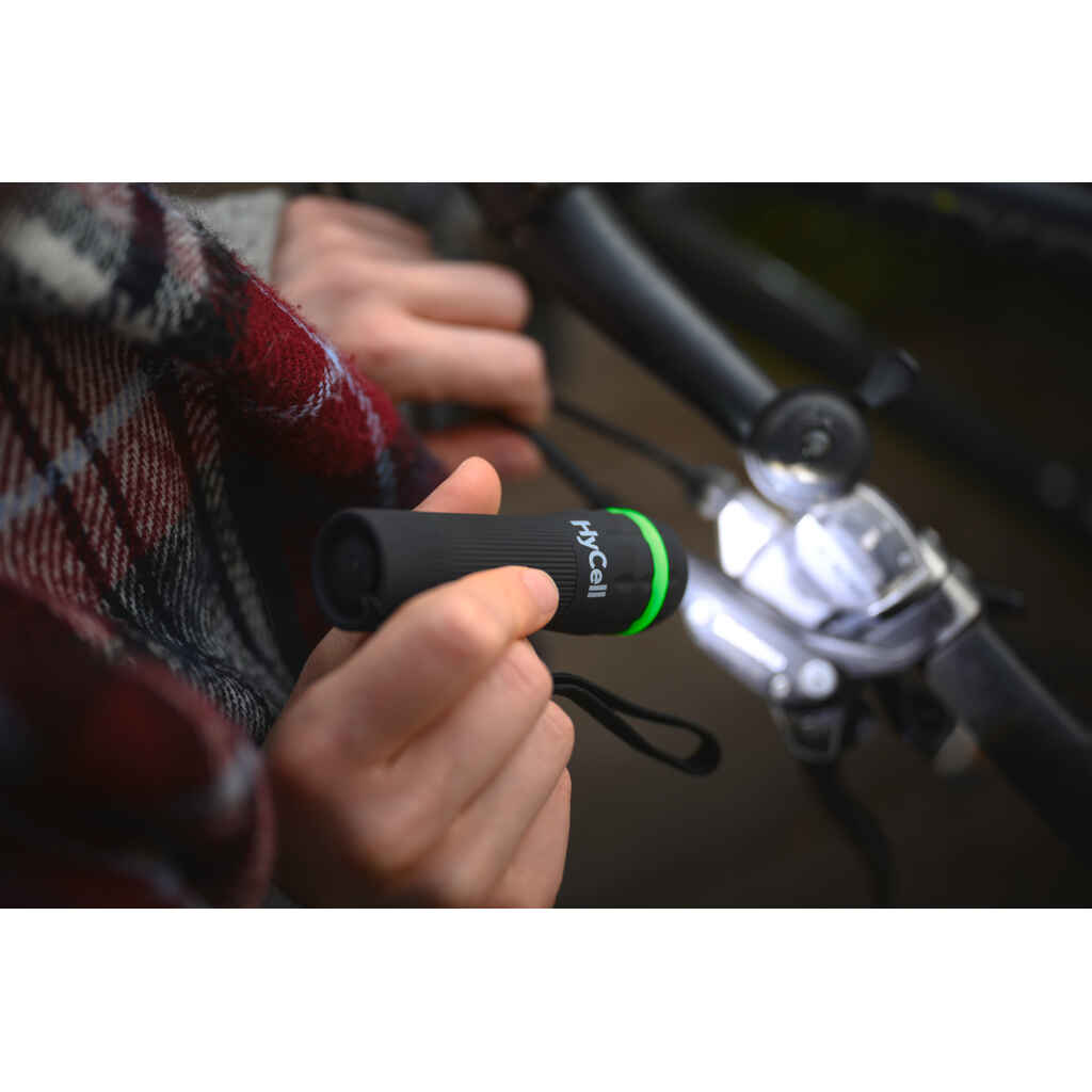 Näppärä Hycell LED-taskulamppu 1W LEDillä. Toimii 3xAAA paristoilla (mukana paketissa). ABS-muovia kumimaisella päällysteellä (pysyy helposti kädessä). Valon Zoom-toiminto. Rannenauha. On/off kytkin taskulampun perässä. Tyylikäs vihreä ’hehkuva’ ympyrä taskulampussa. Valon kantomatka noin 110 m. Toiminta-aika noin 14 tuntia yksillä paristoilla. Kirkkaus jopa 55 lumenia.