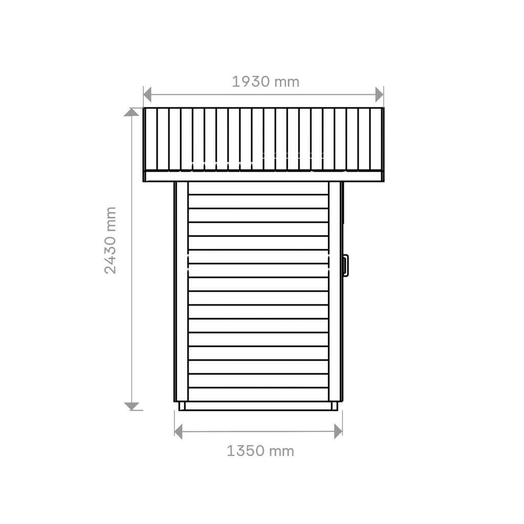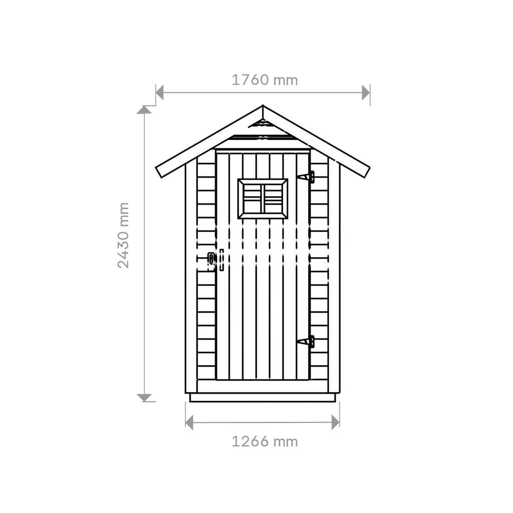 Takuuaika 12 kkEnnen käyttöönottoa puuceehen on asennettava ulkokäyttöön sopiva kate, joka ei sisälly toimitukseen. Katteen tarve noin 4 m2. Lisäksi ennen käyttöönottoa tuote on käsiteltävä ulkokäyttöön soveltuvalla suoja-aineella. Huolehdi, että käsittelet aineenvalmistajan suositusten mukaan. Uusintakäsittely myöhemmin uudelleen tarpeen mukaan. Huussin harjakorkeus 247 cm. Pohjan pinta-ala n. 1,6m2.