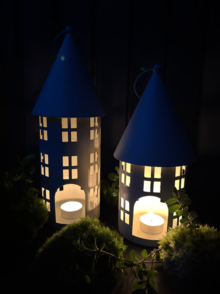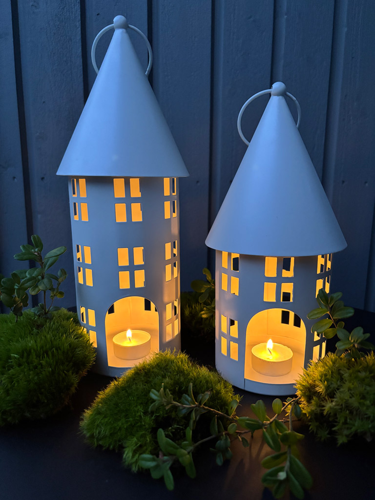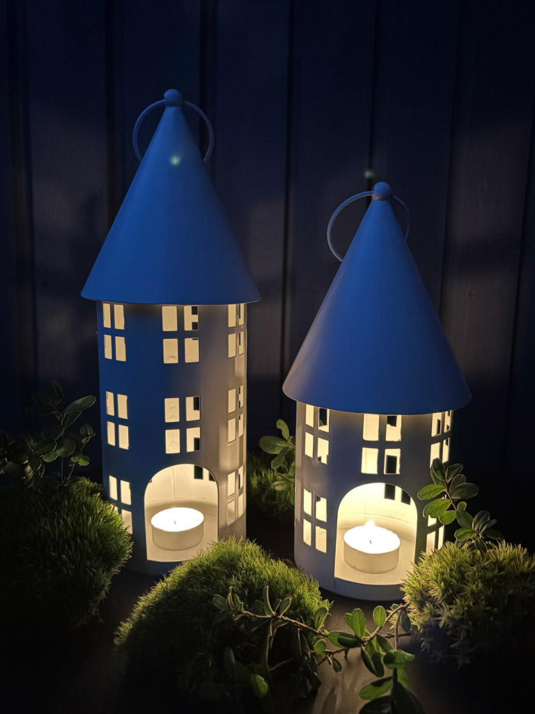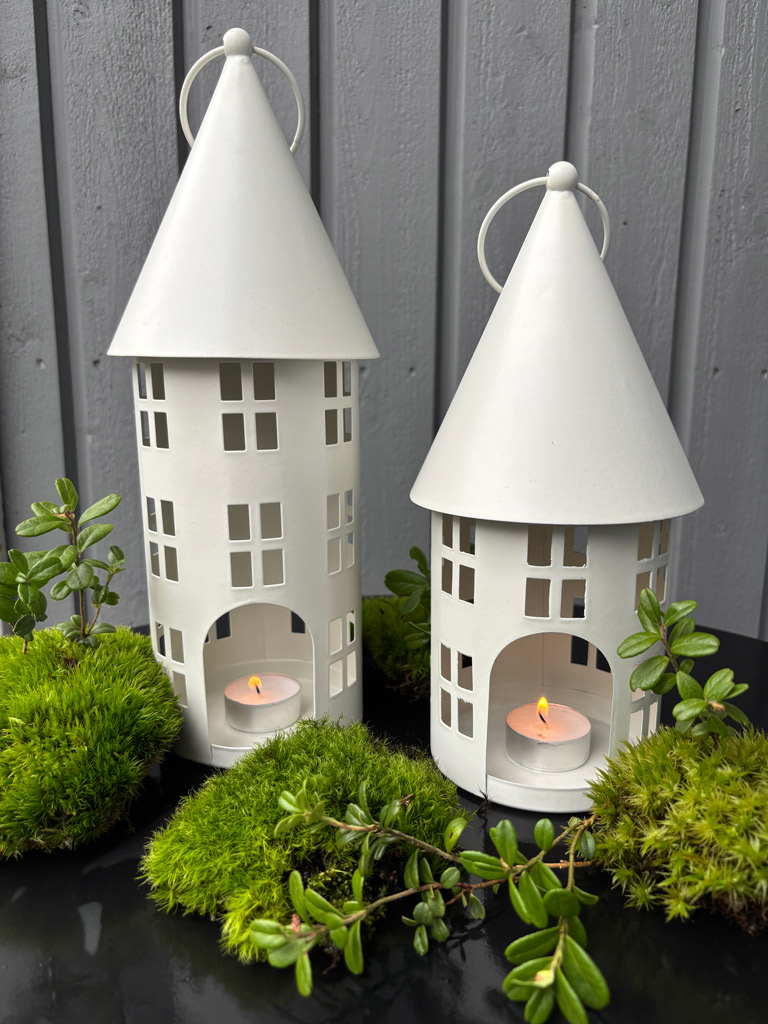 Ihastuttava kerman värinen pyöreä torni lyhty. 25 cm korkea, halkaisija 12,5 cm.