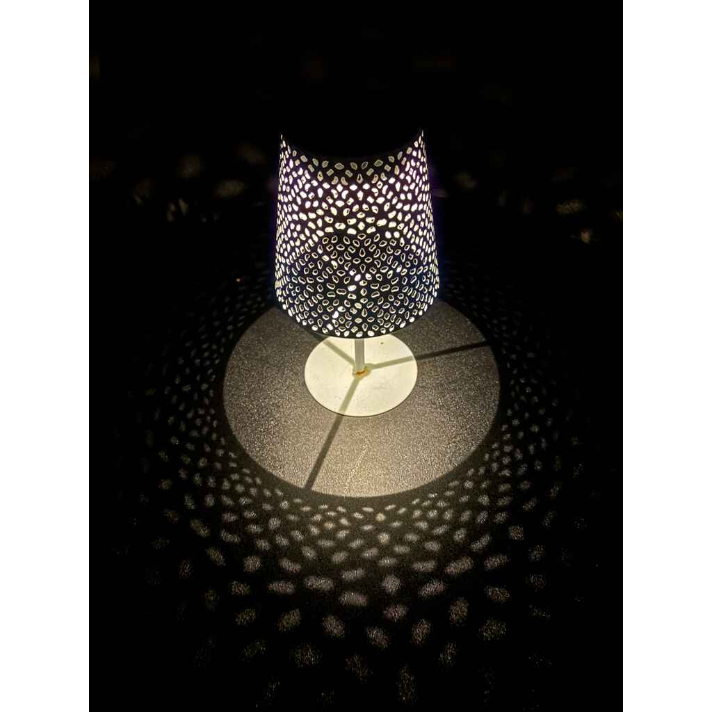 Metallinen solar-pöytävalaisin.