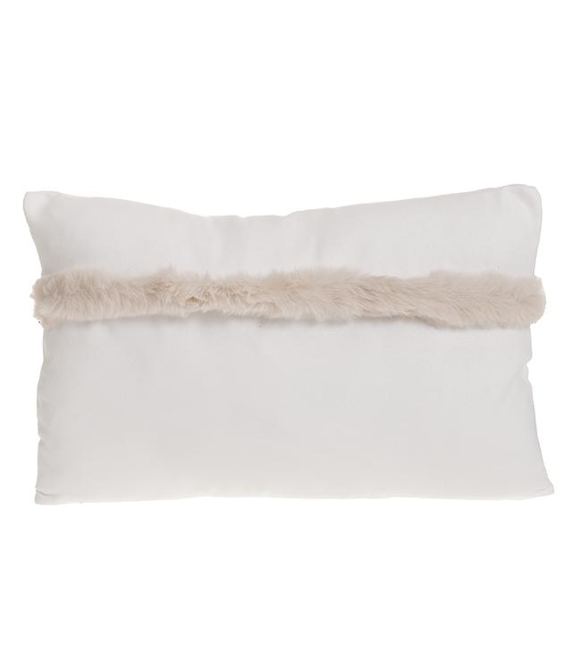 Kaunis tyyny jossa päällipuolella koristetekoturkis ja piilovetoketju yhdellä sivulla. Koko 30 x 50 cm.