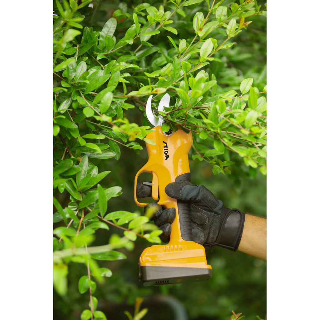 Etsitkö puutarhatyökalua pensaiden, kukkapenkkien ja pensasaitojen leikkaamiseen? STIGA SC 100e Kit -oksasakset on täydellinen ratkaisu halkaisijaltaan enintään 3 cm:n oksien leikkaamiseen helposti ja turvallisesti. Ergonomisesti suunnitelluissa STIGA-oksasaksissa on kahdella sormella käytettävä painike, jossa on helppokäyttöinen lukitusjärjestelmä ja automaattinen leikkaus. Valmiustilassa toimiva lukitus takaa maksimaalisen turvallisuuden sinulle ja muille pihalla oleville henkilöille. Erinomaisen tasapainonsa ja keveytensä ansiosta et väsy leikatessa. SC 100e Kit -sarjan terän avautumista voi säätää digitaalisesti kolmeen eri asetukseen eri halkaisijaltaan oleville oksille: 15, 25 ja 30 mm. Sarja toimitetaan STIGA ePower 20 V 2 Ah -akulla. Akku takaa riittävän käyttöajan ja älykkään energianhallinnan säätämällä tehonkulutusta työn vaatimusten mukaisesti.