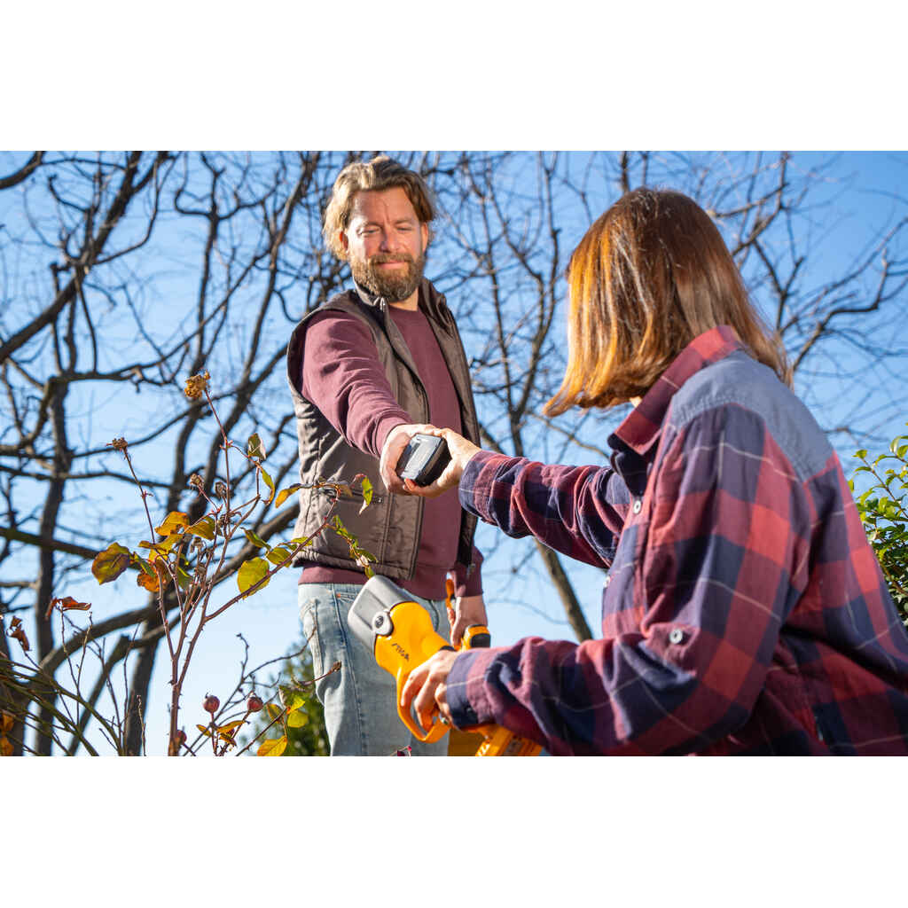 Yhdistetty SP 100e -sarja on ihanteellinen kaikenlaiseen karsintaan! Se tarjoaa sinulle kaksi tehokasta ja kevyttä työkalua: SC 100e Kit -leikkuusakset, jotka sopivat täydellisesti tarkkaan leikkaamiseen ja PR 100e Kit -akkukäsisaha, joka on suunniteltu käsittelemään paksumpia oksia helposti. Molemmat saavat virtansa 20 V:n ePower-akusta optimaalisen ja pitkäaikaisen suorituskyvyn varmistamiseksi.