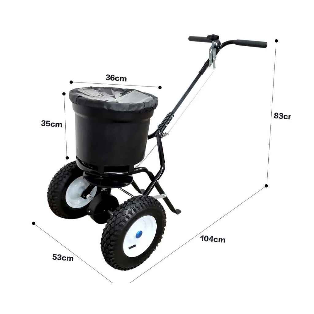 Soveltuu hiekan, alle 5 mm soran ja suolan levittämiseen talvella sekä lannoitteiden ja siementen levittämiseen keväällä. Käsikahva, jolla ohjataan astian pohjassa olevaa annostelijaa.