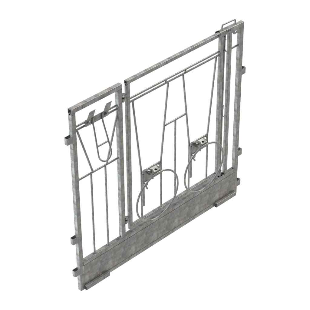 • Metallisessa etupaneelissa kääntyvä ovi ja kiinteä paikka tuttiämpärille – täydellinen vasikoiden imemisen opetteluun.
