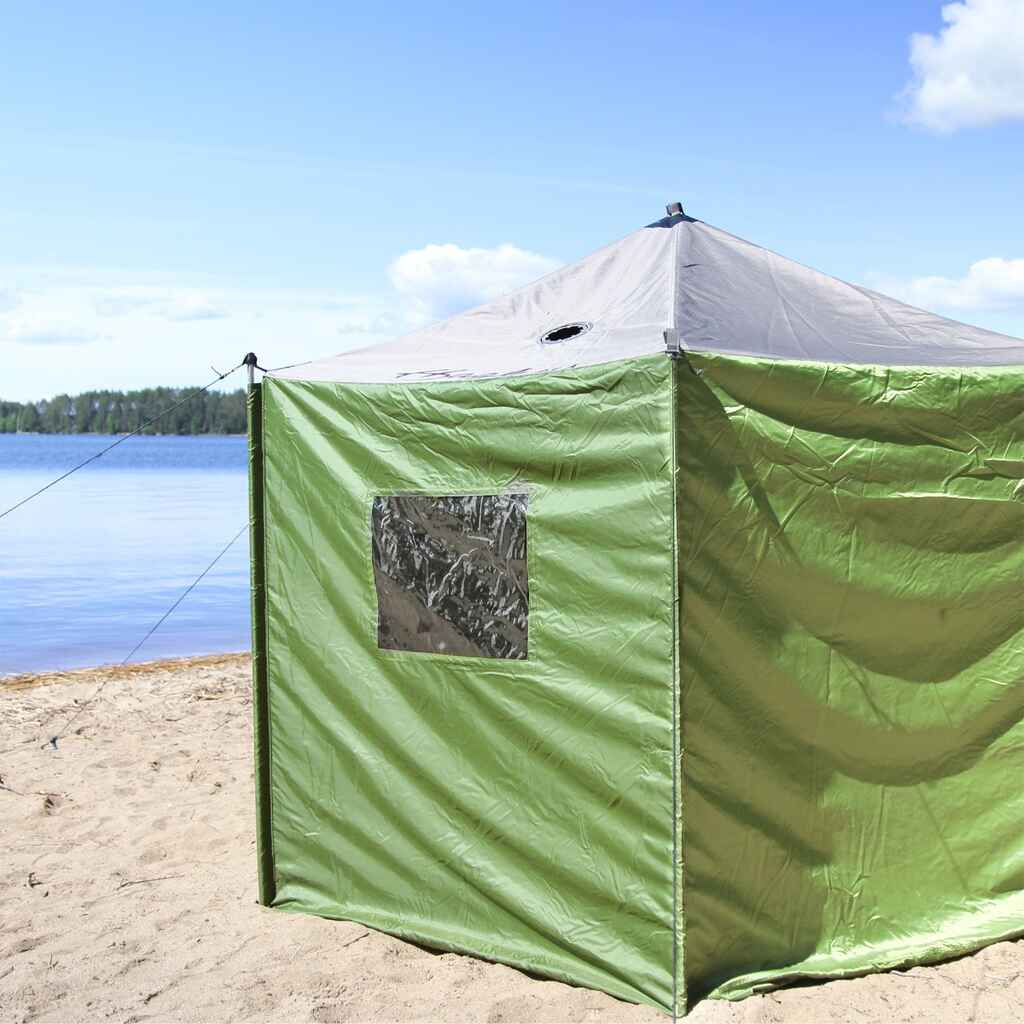 Mikä sen mukavampi kuin sauna retkellä. Telttasaunalla se onnistuu kätevästi. Saunomaan sopii hyvin 4 henkilöä, kuusikulmion mallisen teltan leveys on 240cm, harjakorkeus säädettävissä keskisalosta 192-215cm välillä. Sivusalkojen korkeus 145cm. Valmistettu palamattomasta polyesterista. Sisältää alumiiniset telttasalot, keskisalon, narut, kiilat ja reppumaisen kantopussin. Helppo ja nopea pystytys.