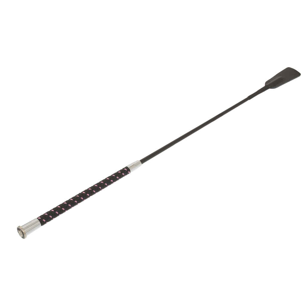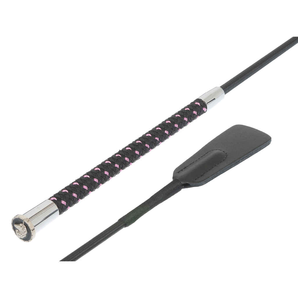 Tässä Wahlsten Unicorn yleis- ja esteraipassa on musta-pinkki kädensija ja raipan nupin päässä on tyylikäs hopeanvärinen yksisarviskuvio. Itse raipan varsi on musta. Raipan pituus on 65cm ja sen päässä on läppä.