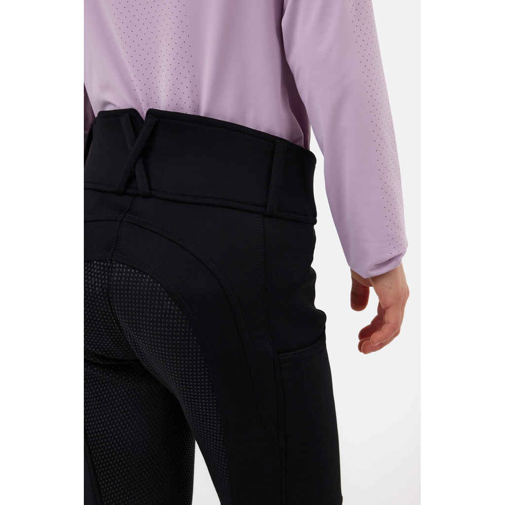 Horze Chara lasten ratsastushousut on valmistettu miellyttävän joustavasta, mutta tukevasta materiaalista. Ratsastushousujen leveämpi vyötärökaistale antaa kivasti tukea keskivartalolle ja pitää housut hyvin paikoillaan. Näissä ratsastushousuissa on silikoniprintti kokopaikan alueella ja kaksi näppärää puhelintaskua. Vyölenkit täydentävät tyylikästä kokonaisuutta.