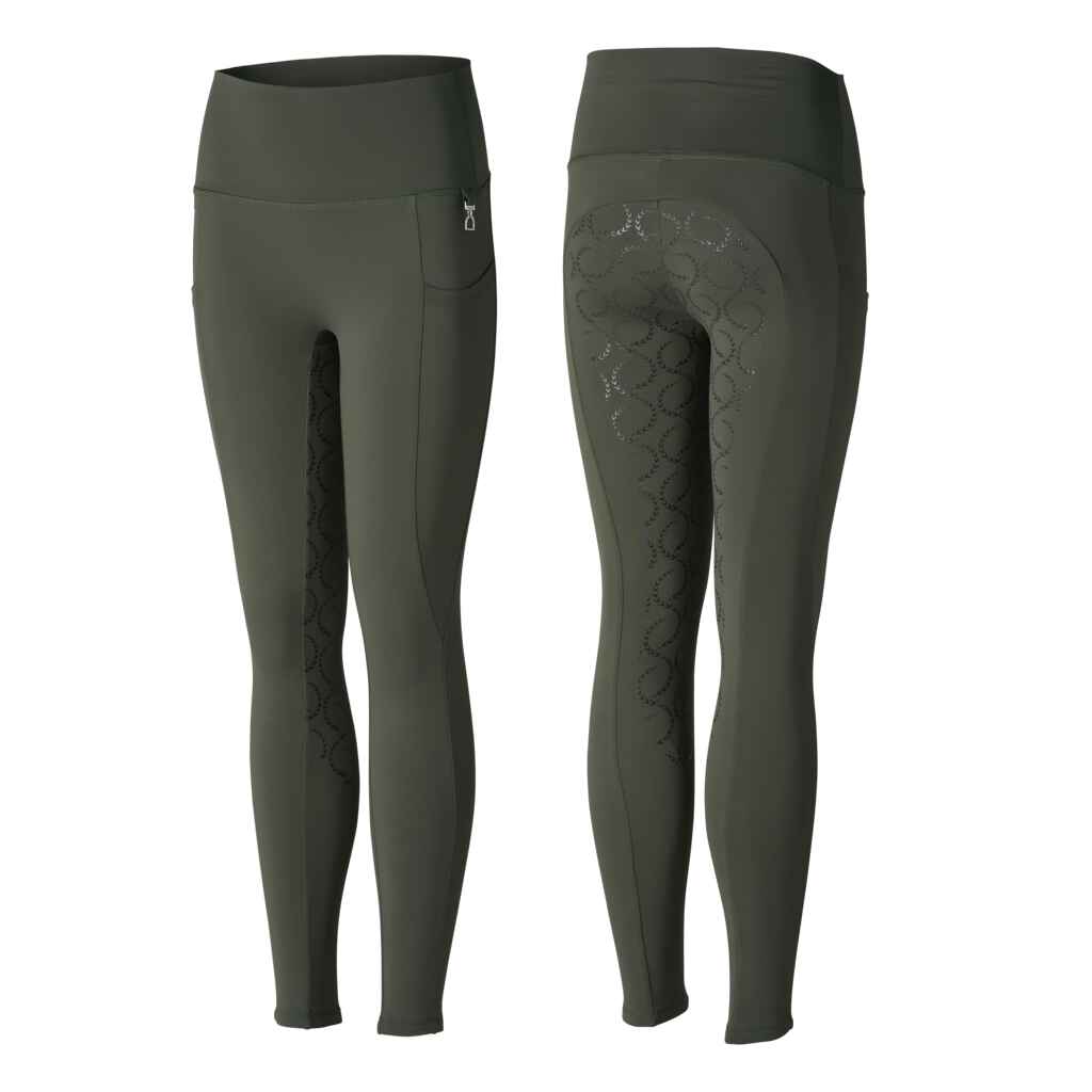 Horze Gillian ratsastuslegginssit lapsille on valmistettu tukevasta kompressiomateriaalista. Housut antavat hyvän tuen ratsastaessa ja tallilla touhutessa. Korkea, joustava sekä napakka vyötärö on erittäin mukava käytössä. Silikonipainatus kokopaikan alueella antaa sopivasti tukea satulaan. Kaksi sivutaskua pikkutavaroille. Materiaali: 75 % polyesteriä, 25 % elastaania.