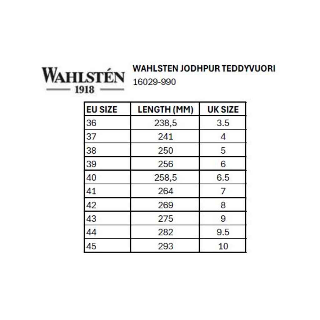 Erittäin lämpimät, nahkaiset Wahlstén talvijodhpurit. Lämmin ja pehmeä teddyvuori. Mustaa pintanahkaa. Tukeva kumimainen pohja, joka ei luista.