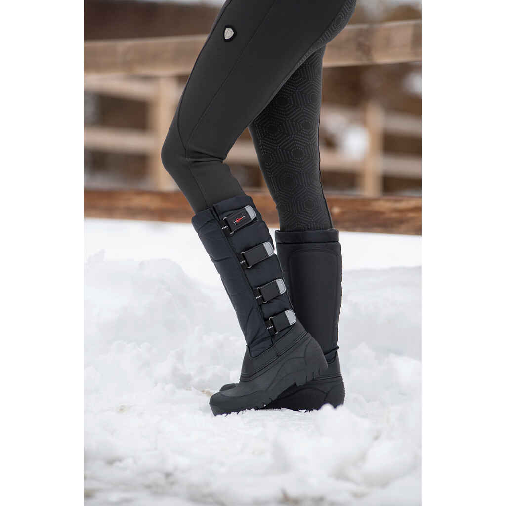 Lämpimät talviratsastussaappaat, joissa on vedenpitävä jalkaterä. Kiinnitys varressa tarranauhoilla. Heijastinyksityiskohta kengän takana ja tarranauhoissa. Kuvasta poiketen kiinteä sisävuori.