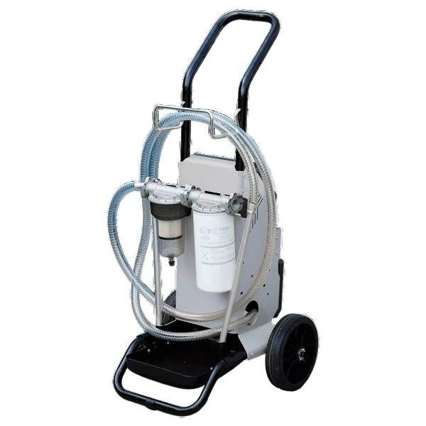 Siirrettävä, pyörillä kulkeva suodatusyksikkö diesel- ja öljynsuodatukseen. Poistaa tehokkaasti veden ja epäpuhtaudet kaksivaiheisella suodatuksella – soveltuu tankkien kierrätyssuodatukseen ja ajoneuvojen täyttöön, kun halutaan varmistaa polttoaineen puhtaus ja säästää laitteistoa.