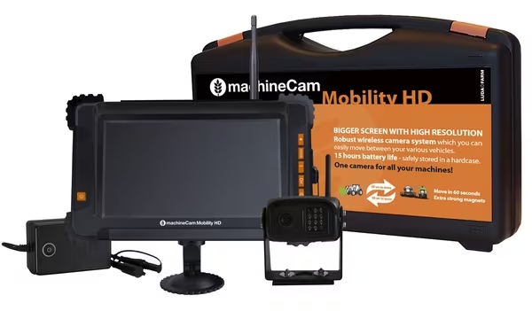 MachineCam Mobility HD on helppokäyttöinen, täysin langaton kamerajärjestelmä kaikkiin työkoneisiin. Jopa 100 metrin lähetysalue, 7" HD-näyttö ja huipputukeva magneettikiinnitys (pitovoima 40 kg) tekevät kamerasta nopean siirtää koneesta toiseen ilman asennusrumbaa. IP69K-luokiteltu kamera toimii luotettavasti pölyssä, sateessa ja pesupaineessa, ja yökuvaus yltää 10 metriin. Järjestelmään voi liittää kaksi kameraa, ja kuva ilmestyy näytölle automaattisesti yhdistämisen jälkeen.
