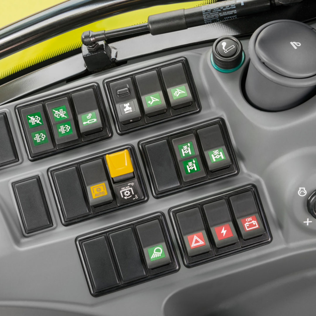 Pitkän akselivälin ja optimoidun painon jakautumisen (50 % etu, 50 % taka) yhdistelmä kompaktiin kokonaispituuteen nähden varmistaa hyvän käsiteltävyyden sekä suorituskyvyn. Tilava ja hyvin valaistu ohjaamo tarjoaa vapaan näkyvyyden koko työkoneen leveydelle. Neljästä kohdasta täysjousitettu ohjaamo ja PROACTIVE-etuakselijousitus takaavat erinomaisen ajovakauden myös kaarreajossa. Ohjaamossa on monia mukavuutta lisääviä tekijöitä, kuten kylmälokero ja laajakulmapeili lisäämään maantieajon turvallisuutta.
