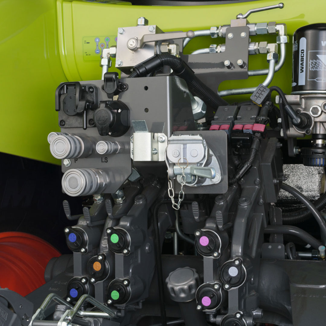 Traktorin takaosan kaikki hydrauliikkaliittimet on varustettu vapautusvivulla, jolloin letkut voidaan liittää tai irrottaa myös paineen alaisena traktorista. Kaikki mallit on varustettu kuormantuntevalla hydrauliikalla. 205 l/min tuotolla varustettu hydrauliikkajärjestelmä. Traktorin takaa löytyy aina Power-Beyond liitännän lisäksi vapaan paluun liitin. Jopa 10 tonnia nostava takanostolaite takaa yhdessä loistavan näkyvyyden kanssa, että myös raskaimpien työkoneiden käyttö on helppoa ja vaivatonta.
