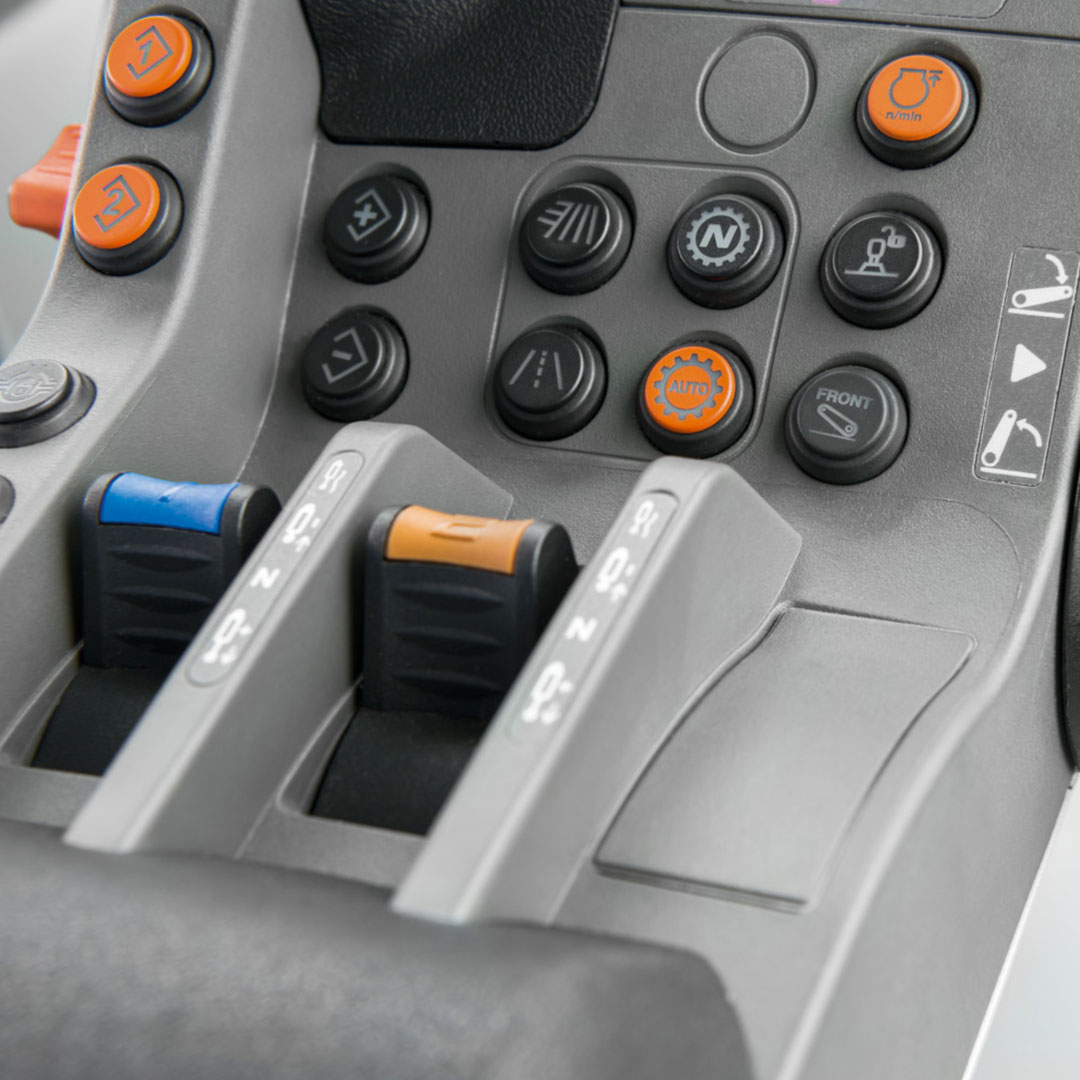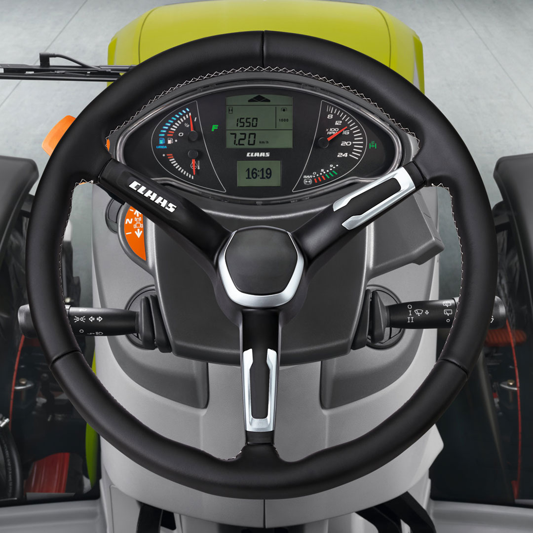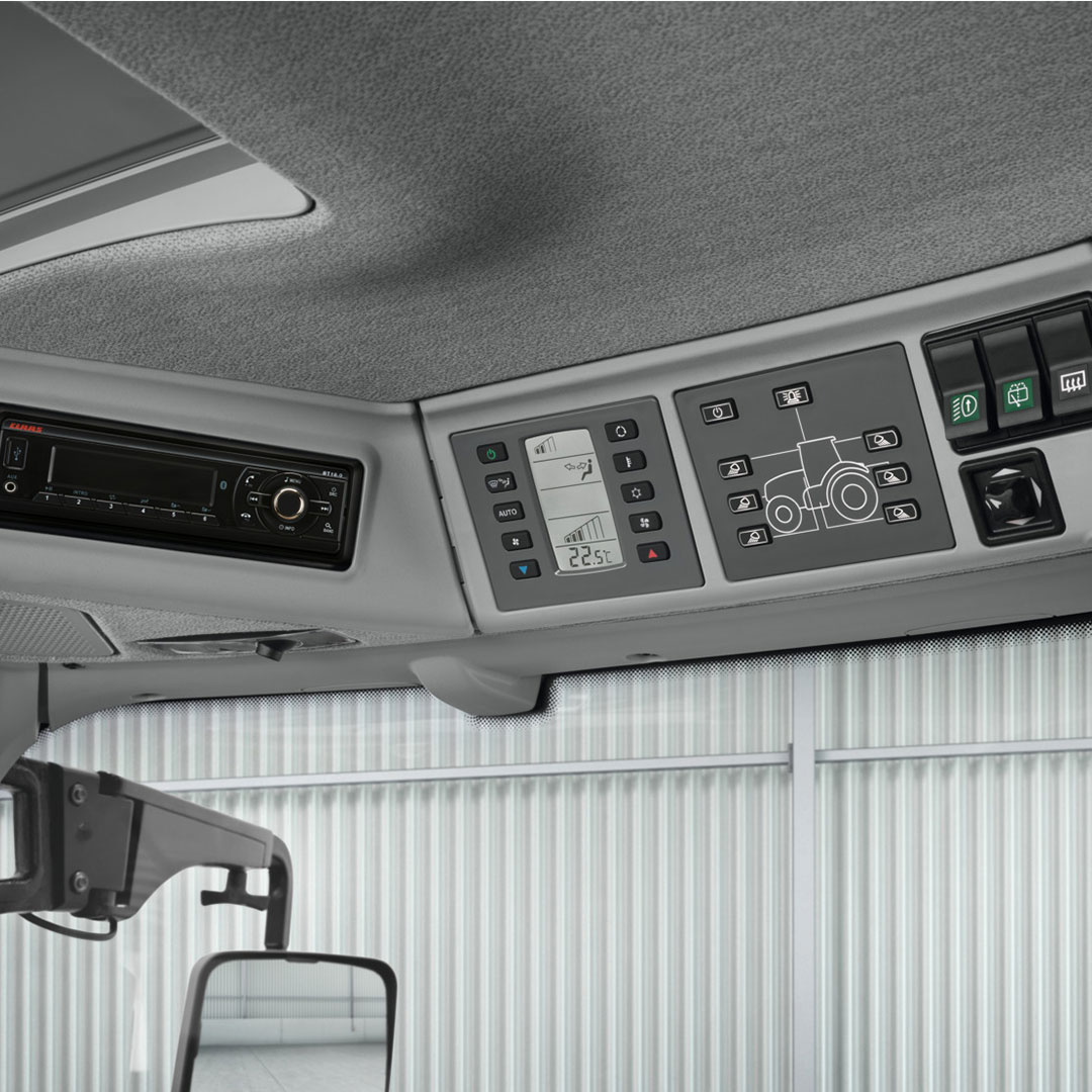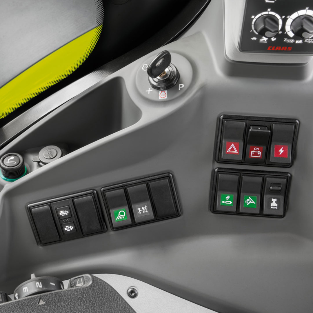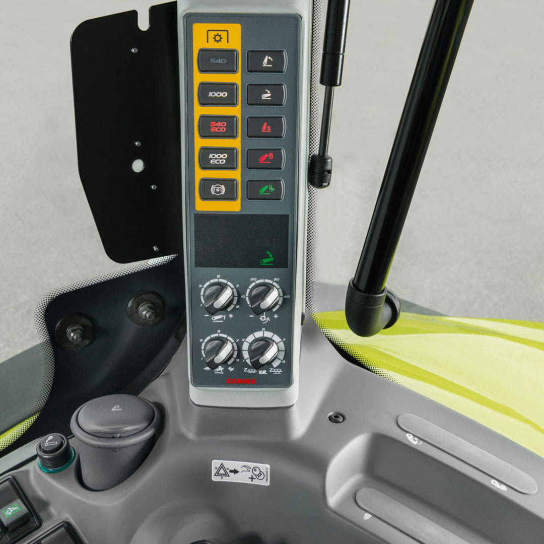 Varustelun omaispiirteitä ovat sähköisesti ohjatut hydrauliikkalohkot ja ennen kaikkea 12 tuuman kosketusnäytöllinen CEBIS-terminaali. CEBIS-näyttö käyttää selkeitä symboleita ja värikoodeja antaakseen selkeän ja kattavan kuvan säädöistä. Helpon valikkorakenteen ansiosta kaikki säädöt voidaan tehdä vain muutaman napin painalluksella. CMOTION-monitoimikahva tarjoaa menetelmän, joka mahdollistaa AXION mallien tärkeimpien ominaisuuksien mukavamman ja tehokkaamman käytön. CMOTION-kahvasta löydät vaihteiston hallinnan, suunnanvaihdon, takanostolaitteen käytön sekä useita ohjelmoitavia toimintonäppäimiä. CEBIS-varustelussa kaikki tärkeät hallintalaitteet on integroitu kyynärnojaan.