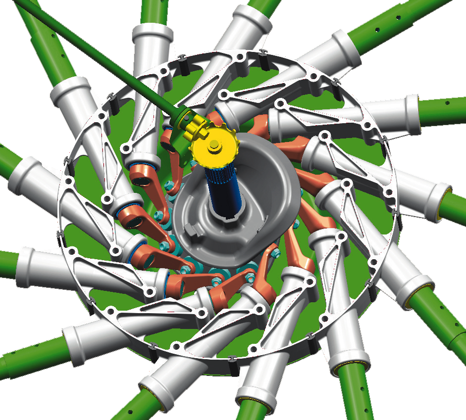 JetEfect-ripustus nostaa ja laskee roottorit aina taaksepäin kallistettuna, jolloin vältytään piikkien osumiselta maahan