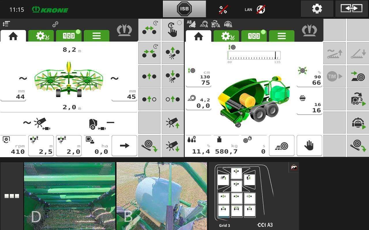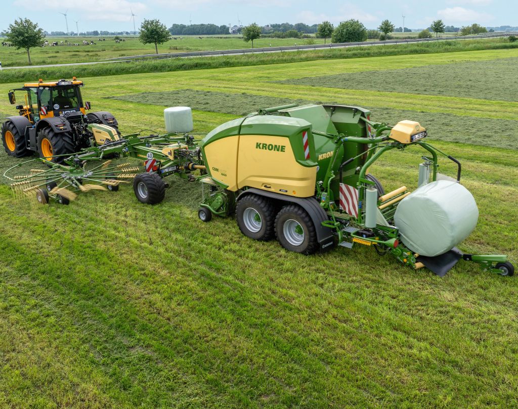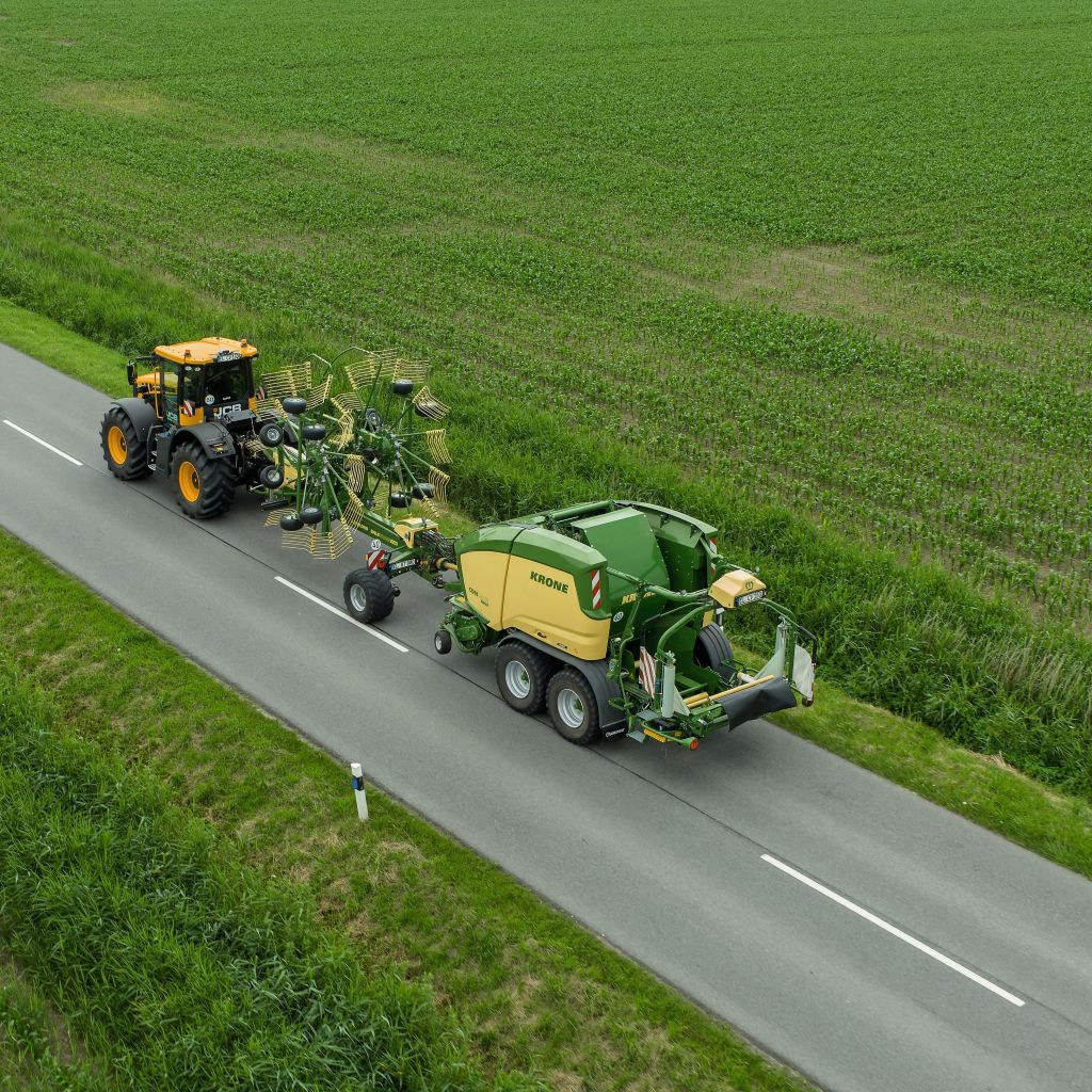 Kun paalain on kytketty karhottimen perään, seuraavat sekä karhottimen että paalaimen pyörät traktorin jälkiä karhottimessa olevan pakko-ohjauksen ansiosta. Tämä helpottaa kulkua peltoliittymistä, ja mahdollistaa yhtäaikaisen karhotuksen ja noukinnan myös pellon kulmissa. Pakko-ohjausta hyödynnetään myös tasaamaan paalikammion täyttymistä. Jos kammion toinen reuna täyttyy nopeammin, antaa Krone-paalain tästä viestin karhottimelle, ja karhotin kääntää kuljetuspyöriä hieman eri asentoon, ohjaten enemmän materiaalia noukkimen toiseen reunaan.
