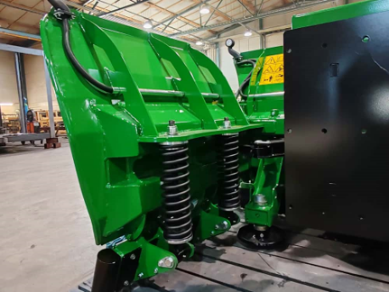 Kulutusteräksiset terät ovat jousitetut sekä 20 asteen ottavassa kulmassa saaden aikaan tasaisen työjäljen. Kaksi korkeudensäätöjalasta parantavat vakautta sekä helpottavat säätöä. Aura on varustettu vakiona LED-äärivaloilla sekä heijastinteippauksilla.