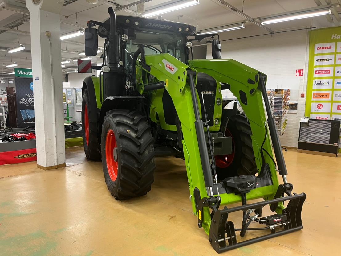 Ajamaton Arion 550 Cebis portaattomalla CMatic vaihteistolla heti toimitukseen! Hyvät varusteet, mm. automaattiohjaus, automaatti ilmastointi, FL140 etukuormain, kattoikkuna, sähköpeilit, lämmitettävä takalasi, dynaaminen ohjaus, 150 l/min hydrauliikka, led valaistus, paineilmat, Machine Connect / Remote Service lisenssi 5 vuodeksi